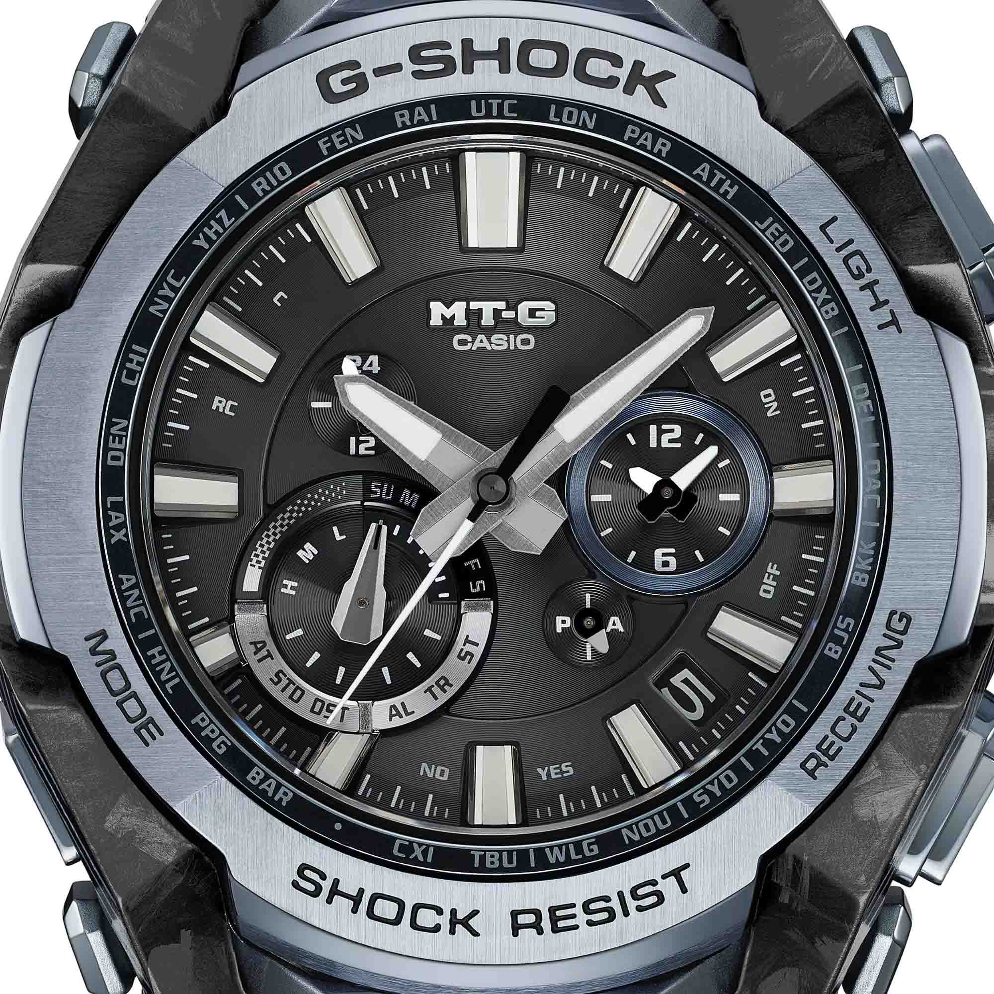 Мужские радиоуправляемые часы Casio G-Shock Premium MTG-B4000B-1A2DR с функцией Tough Solar — это технологичный аксессуар, сочетающий в себе устойчивость к внешним воздействиям и высокую точность. Модель выполнена из углерода и нержавеющей стали, что придаёт ей прочность и устойчивость к царапинам. Корпус имеет размеры 56,6x45,3x14,4 мм, а его вес составляет 112 г. Защиту механизма обеспечивает сапфировое стеклоСапфировое стеклоПрочный и надёжный материал из кристалла сапфира синтетического происхождения, характеризующийся особой твёрдостью и устойчивостью к царапинам и повреждениям. с антибликовым покрытиемАнтибликовое покрытиеСлой оксида металла в 0,13-0,3 микрон, благодаря которому стекло часов не бликует и не отражает свет. Антибликовое покрытие уменьшает отражение света в 10 раз, обеспечивая отличную читаемость показателей циферблата., устойчивое к повреждениям. Заводная головка с винтовым замком обеспечивает надёжную фиксацию на запястье. Браслет выполнен из смолы, а его ширина регулируется от 145 до 215 мм. Часы оснащены функцией радиоуправления с многодиапазонным приёмом сигнала (DCF77, MSF, WWVB, JJY, BPC), что позволяет автоматически настраивать время по всему миру. Система Bluetooth подключается к смартфону, обеспечивая автоматическую синхронизацию времени и простоту настройки. Часы поддерживают 39 часовых поясов, включая всемирное координированное время, и автоматически переключаются на летнее время. Функциональность модели включает секундомер с точностью до секунды, таймер обратного отсчёта (до 24 часов), будильник, светодиодную подсветку Super Illuminator и полный автоматический календарь до 2099 года. Водонепроницаемость позволяет использовать модель при плавании и других водных активностях без глубокого погружения. Эти часы станут универсальным аксессуаром для тех, кто ценит сочетание стиля, функциональности и надёжности — идеальный выбор для повседневной носки и активного образа жизни.