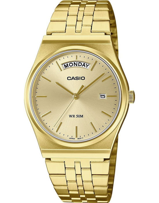 Casio Collection MTP-B146G-9A — мужские часы в лаконичном классическом исполнении. Корпус изготовлен из нержавеющей стали с IP-покрытиемIP-покрытиеМетод ионного напыления. Демонстрирует повышенную устойчивость к истиранию, окислению и химическим веществам. Под воздействием высокого давления и температуры около 1500°C молекулы металла надёжно соединяются с частицами корпуса часов. и имеет сбалансированные размеры, обеспечивающие комфортную посадку на запястье.