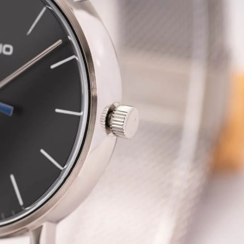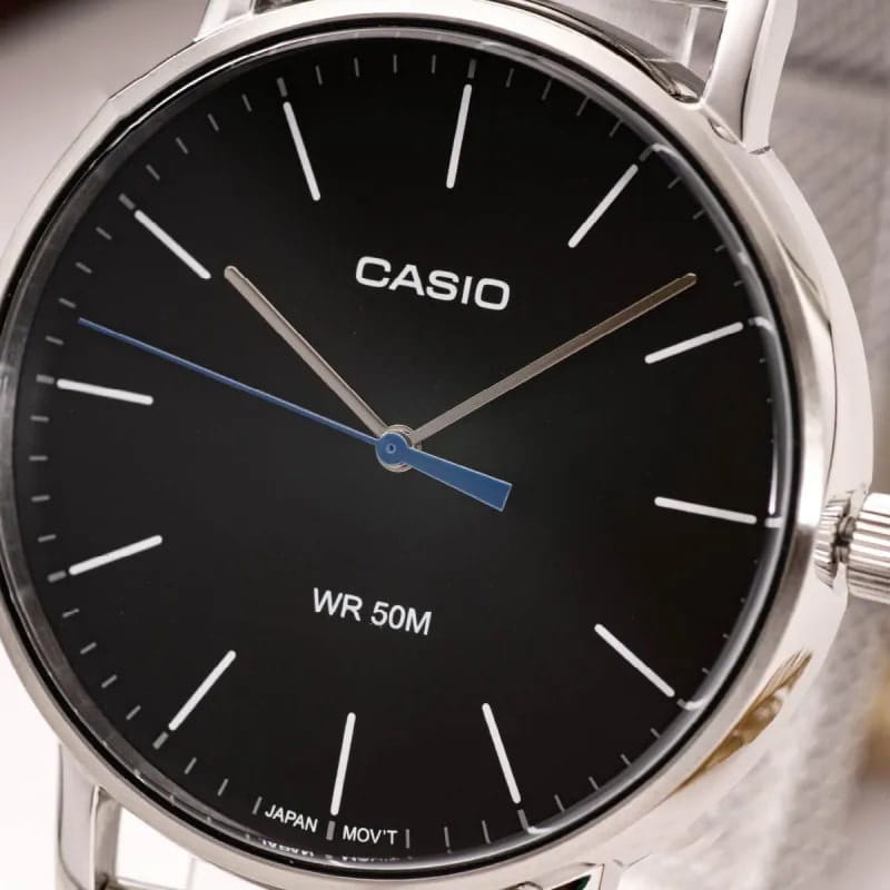 Японские мужские часы с минеральным стекломМинеральное стеклоМинеральное стекло представляет собой искусственно выращенный минерал кварца. Такое стекло отличается особой устойчивостью к повреждениям и царапинам. Уступает по некоторым качествам сапфировому стеклу. Casio Collection MTP-E171M-1E, кварцевый механизм с высокой точностью. Класс водозащиты: 50 метров, позволит защитить корпус от случайных брызг или капель дождя. Корпус часов изготовлен из стали. Стальной браслет на раскладной застёжкеРаскладная застёжкаТакой тип застёжки используется только на браслетах из металла. Она никогда не раскрывается полностью, происходит разделение на 2 и более частей. Раскладывающая застёжка снизит вероятность потери часов к минимуму..