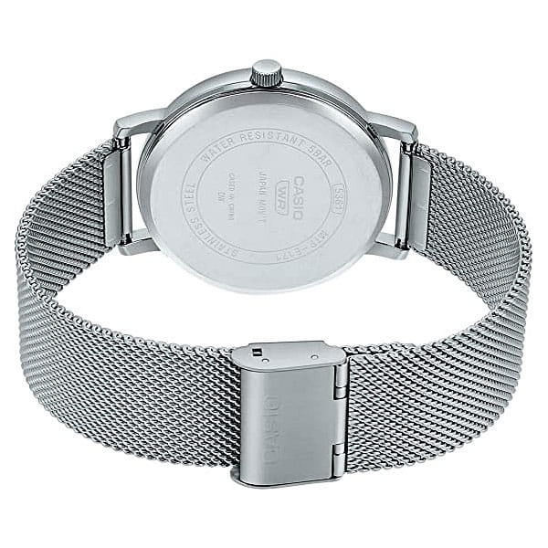 Японские мужские часы с минеральным стекломМинеральное стеклоМинеральное стекло представляет собой искусственно выращенный минерал кварца. Такое стекло отличается особой устойчивостью к повреждениям и царапинам. Уступает по некоторым качествам сапфировому стеклу. Casio Collection MTP-E171M-2E, кварцевый механизм с высокой точностью. Класс водозащиты: 50 метров, позволит защитить корпус от случайных брызг или капель дождя. Корпус часов изготовлен из стали. Стальной браслет на раскладной застёжкеРаскладная застёжкаТакой тип застёжки используется только на браслетах из металла. Она никогда не раскрывается полностью, происходит разделение на 2 и более частей. Раскладывающая застёжка снизит вероятность потери часов к минимуму..