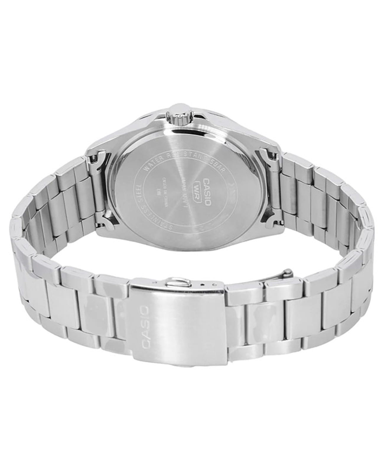 Японские мужские часы с минеральным стекломМинеральное стеклоМинеральное стекло представляет собой искусственно выращенный минерал кварца. Такое стекло отличается особой устойчивостью к повреждениям и царапинам. Уступает по некоторым качествам сапфировому стеклу. Casio Collection MTP-E725D-1A, кварцевый механизм с высокой точностью. Корпус часов изготовлен из стали. Стрелки и метки с люминесцентным покрытиемЛюминесцентное покрытиеПозволяет считывать показания времени в темноте. Производители наносят на стрелки, часовые индексы, безель или поверхность циферблата светонакопительный состав, дающий холодное свечение.. Метки в виде штрихов. Окошко даты находится в положении 6 часов. Заводная головка с защитой. Класс водозащиты: 50 метров, позволит защитить корпус от случайных брызг или капель дождя. Стальной браслет на раскладной застёжкеРаскладная застёжкаТакой тип застёжки используется только на браслетах из металла. Она никогда не раскрывается полностью, происходит разделение на 2 и более частей. Раскладывающая застёжка снизит вероятность потери часов к минимуму..