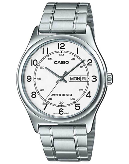 Японские мужские наручные часы Casio Collection MTP-V006D-7B2, кварцевый механизм с высокой точностью. Отображение даты - число и месяц. Циферблат с метками в виде арабских цифр. Рифленая заводная головка. Батарейка рассчитана на 3 года. Браслет с раскладывающейся застежкойРаскладная застёжкаТакой тип застёжки используется только на браслетах из металла. Она никогда не раскрывается полностью, происходит разделение на 2 и более частей. Раскладывающая застёжка снизит вероятность потери часов к минимуму.