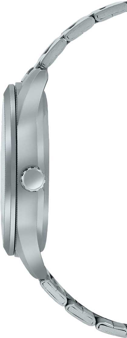 Аксессуар в строгом черном исполнении никогда не утратит актуальности, он будет прекрасным дополнением к классическому костюму, спортивной футболке, модных джинсах. Компактный циферблат выполнен в минималистичном стиле, с метками в виде штрихов. Контрастные стрелки и метки с люминесцентным покрытиемЛюминесцентное покрытиеПозволяет считывать показания времени в темноте. Производители наносят на стрелки, часовые индексы, безель или поверхность циферблата светонакопительный состав, дающий холодное свечение. хорошо видны на его фоне. Браслет с раскладной застёжкойРаскладная застёжкаТакой тип застёжки используется только на браслетах из металла. Она никогда не раскрывается полностью, происходит разделение на 2 и более частей. Раскладывающая застёжка снизит вероятность потери часов к минимуму.