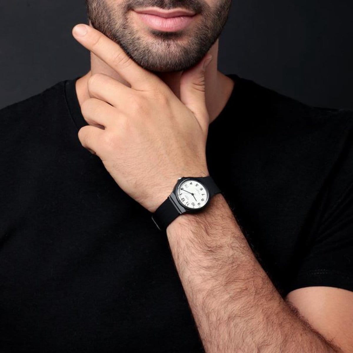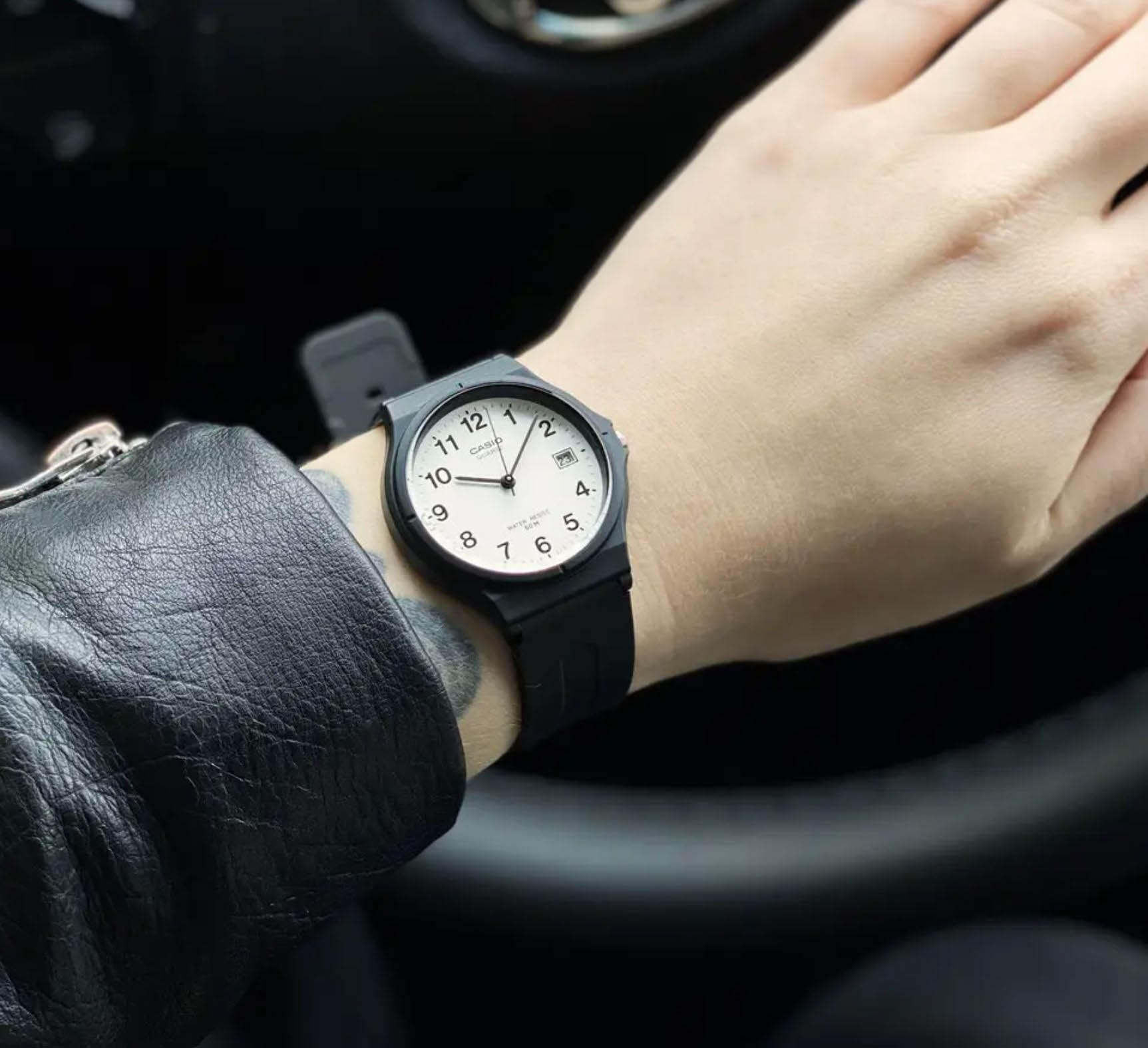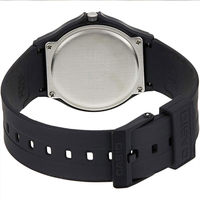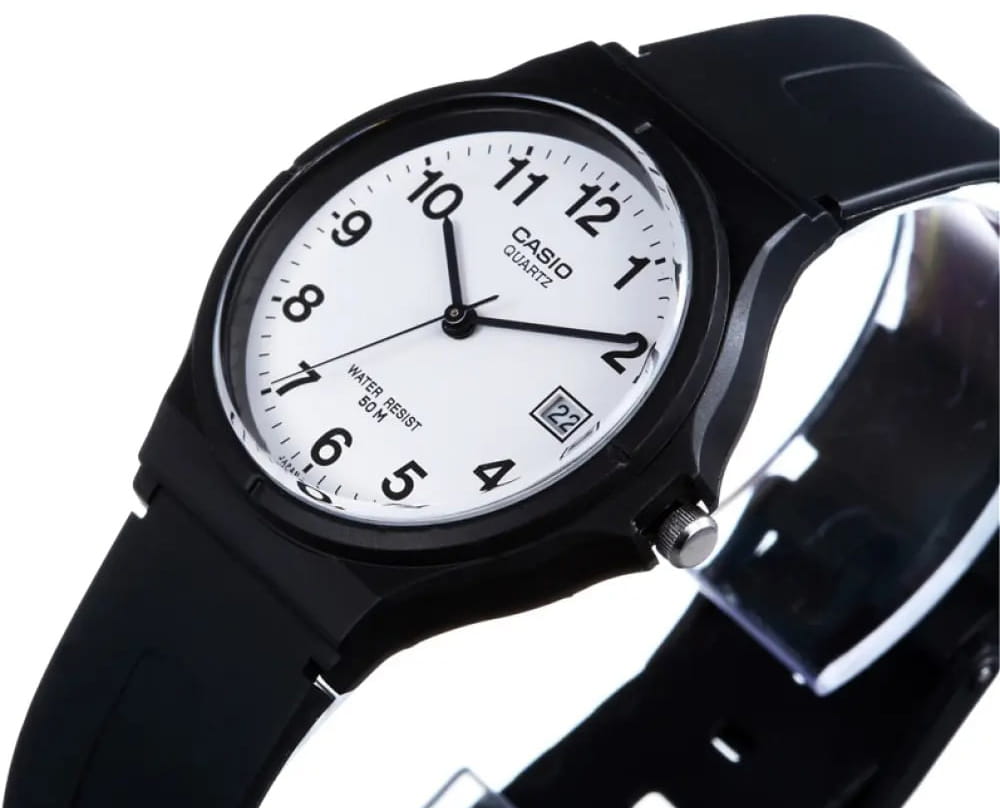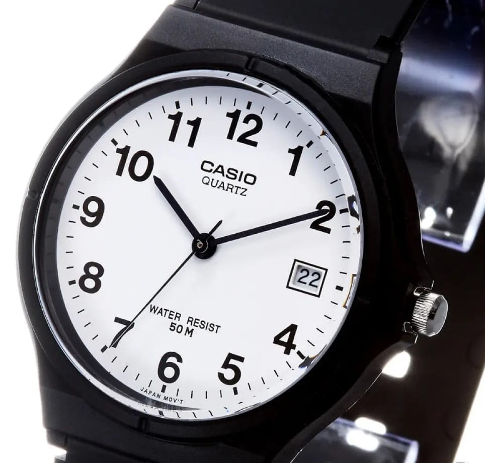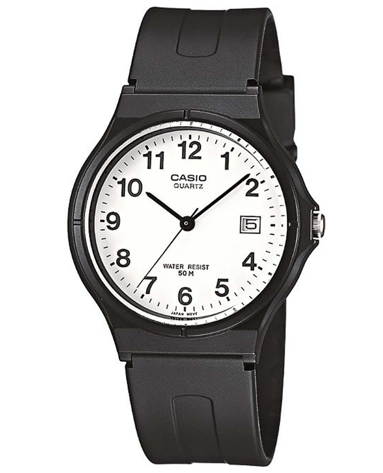 Японские мужские часы с органическим стеклом Casio Collection MW-59-7B, кварцевый механизм с высокой точностью. Класс водозащиты: 50 метров, позволит защитить корпус от случайных брызг или капель дождя. Корпус часов изготовлен из пластика. Пластиковый ремешок на стандартной застёжке. Окошко даты находится в положении 3 часа. Метки в виде арабских цифр.