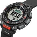 Функциональная модель с красными акцентами обладает расширенными возможностями. Каждое усложнение направляет усилия на то, чтобы ваше путешествие прошло легко и насыщенно. Среди функций компас, барометр, индикатор температуры, мировое времяМировое время Полезное часовое усложнение, отображающее время в основных городах и известных областях по всему миру, оно связано с часовыми поясами, удобно для путешественников и бизнесменов. , график восхода и заката солнца, высотомер, таймер. Японский кварцевый механизм. Технология . Индикатор состояния заряда батареи. Электролюминесцентная подсветкаЭлектролюминесцентная подсветкаЭлектролюминесцентная панель устанавливается под ЖК-экраном часов, при нажатии кнопки электричество преобразуется в свет за счёт подачи напряжения на атомы фосфора, такой тип подсветки позволяет освещать весь циферблат. циферблата. Ударопрочный корпусУдаропрочный корпусМеханизм заключён в корпус, выполненный из современных материалов, устойчивых к ударам, механическим повреждениям и падению с высоты: инновационный пластик, карбон, нержавеющая сталь, титан. и ремешок из полимерного материала. Вращающийся безельБезельВнешний ободок, закрепляющий стекло. В спортивных часах так называется поворотное кольцо с делениями на циферблате, выполняет роль таймера – замеряет отрезки времени на шкале. Неподвижный безель – элемент декора. Однонаправленно вращающийся безель на дайверских часах позволяет фиксировать моменты погружения и выныривания на поверхность.. Минеральное стекло. Водостойкость до 10 бар. Устойчивость к температуре ниже -10°C. Габариты: 54,7 x 51,7 x 15,1 мм.