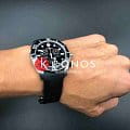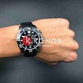 Наручные часы отличаются привлекательным дизайном, чёрный циферблат имеет крупную индикацию времени, расставлены акценты красного цвета. Модель комплектуется кварцевым механизмом ETA Precidrive™Precidrive™Инновационный кварцевый механизм Certina. Часы, оснащённые этим швейцарским калибром, приравниваются к точности к сертифицированным хронометрам, точность хода составляет +/-10 секунд в год., отличающимся отменной точностью хода. Вращающийся безельБезельВнешний ободок, закрепляющий стекло. В спортивных часах так называется поворотное кольцо с делениями на циферблате, выполняет роль таймера – замеряет отрезки времени на шкале. Неподвижный безель – элемент декора. Однонаправленно вращающийся безель на дайверских часах позволяет фиксировать моменты погружения и выныривания на поверхность. имеет чёрное PVD-покрытиеPVDУльтратонкое покрытие наносится в технике вакуумного напыления, сочетает в себе нитрид титана особой прочности со слоем золота или оксида хрома. Несёт в себе декоративную или защитную функцию., защищающее от царапин. Сапфировое стекло с антибликовой обработкой. Силиконовый ремешок. Индикатор EOLEOLПредставляет собой систему, уведомляющую владельца часов о необходимости замены элемента питания. За 2 недели до полного разряда батарейки секундная стрелка перестаёт ходить чётко и начинает перепрыгивать на 3-4 деления.. Секундомер, хронографХронографФункция позволяет измерять отрезки времени с особой точностью: часы, минуты, секунды. Верным признаком хронографа является наличие на циферблате 3 дополнительных окошек-счётчиков., окошко даты. Диаметр корпуса: 43 мм.