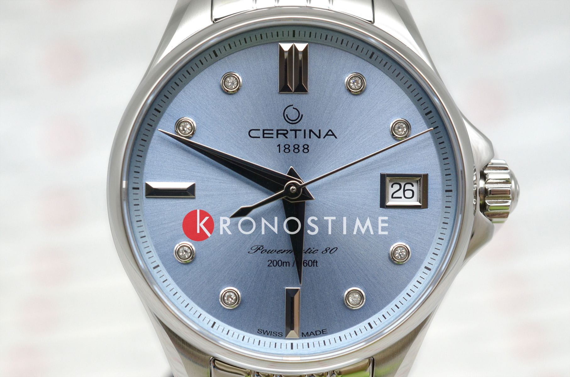 Аксессуар обладает изящным силуэтом, отражающим классический стиль и элегантность. Циферблат украшен восемью роскошными бриллиантами оттенка Top Wesselton. Калибр Powermatic с автоподзаводом не только имеет 80-часовой запас хода, но и оснащен балансирной пружиной Nivachron ™, гарантирующей надежную точность, не подверженную влиянию магнитных полей. Сверкающие бриллианты и изысканные детали создают неподвластную времени элегантность.. Концепция DS ConceptDS ConceptDouble Security Concept, обозначает двойную надёжность и безупречную точность часов Certina. Двойная система защиты подразумевает обеспечение максимальной устойчивости к ударам и высоких показателей водонепроницаемости. гарантирует повышенную ударопрочность часов и сохранение водонепроницаемости до 20 бар. Одностороннее антибликовое покрытие сапфирового стекла. Корпус и браслет из хирургической стали 316L.. Диаметр корпуса: 34,5 мм.