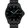 Брендовая модель имеет чёрный циферблат с контрастными стрелками и часовой разметкой, что обеспечивает хорошую читаемость показателей в любых условиях. Стальной браслет надёжно обхватывает запястье, а предотвращает случайное расстёгивание. Часы работают за счёт швейцарского пружинного механизма ETA Powermatic 80Powermatic 80Эксклюзивный калибр от швейцарской компании ETA с увеличенным запасом хода до 80 часов за счёт удлинённой заводной пружины. Характеризуется улучшенной системой спуска со сниженным трением., его запас хода увеличен до 80 часов. Соблюдение DS ConceptDS ConceptDouble Security Concept, обозначает двойную надёжность и безупречную точность часов Certina. Двойная система защиты подразумевает обеспечение максимальной устойчивости к ударам и высоких показателей водонепроницаемости.. Корпус из нержавеющей стали 316L. Стекло из сапфира с покрытием «антиблик». Водостойкость 200 метров. Подсветка SuperLumiNovaЛюминесцентное покрытиеПозволяет считывать показания времени в темноте. Производители наносят на стрелки, часовые индексы, безель или поверхность циферблата светонакопительный состав, дающий холодное свечение.. Завинчивающаяся задняя крышка. Защищённая заводная головка. Календарь с индикацией числа и дня недели. Диаметр корпуса: 41 мм.