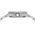 Certina DS Action Lady C048.210.11.381.00 – элегантные женские часы, сочетающие изысканный стиль и высокую функциональность. Корпус диаметром 34,5 мм выполнен из нержавеющей стали 316L, обеспечивающей прочность и долговечность. Серый циферблат украшен метками с люминесцентным покрытиемЛюминесцентное покрытиеПозволяет считывать показания времени в темноте. Производители наносят на стрелки, часовые индексы, безель или поверхность циферблата светонакопительный состав, дающий холодное свечение., обеспечивающим отличную читаемость в любых условиях, и защищён сапфировым стекломСапфировое стеклоПрочный и надёжный материал из кристалла сапфира синтетического происхождения, характеризующийся особой твёрдостью и устойчивостью к царапинам и повреждениям. с антибликовым покрытиемАнтибликовое покрытиеСлой оксида металла в 0,13-0,3 микрон, благодаря которому стекло часов не бликует и не отражает свет. Антибликовое покрытие уменьшает отражение света в 10 раз, обеспечивая отличную читаемость показателей циферблата., устойчивым к царапинам. БезельБезельВнешний ободок, закрепляющий стекло. В спортивных часах так называется поворотное кольцо с делениями на циферблате, выполняет роль таймера – замеряет отрезки времени на шкале. Неподвижный безель – элемент декора. Однонаправленно вращающийся безель на дайверских часах позволяет фиксировать моменты погружения и выныривания на поверхность. с PVD-покрытиемPVDУльтратонкое покрытие наносится в технике вакуумного напыления, сочетает в себе нитрид титана особой прочности со слоем золота или оксида хрома. Несёт в себе декоративную или защитную функцию.. Часы оснащены швейцарским кварцевым механизмом ETA F05.412 с технологией Precidrive™Precidrive™Инновационный кварцевый механизм Certina. Часы, оснащённые этим швейцарским калибром, приравниваются к точности к сертифицированным хронометрам, точность хода составляет +/-10 секунд в год., обеспечивающей высокую точность хода. Функция EOLEOLПредставляет собой систему, уведомляющую владельца часов о необходимости замены элемента питания. За 2 недели до полного разряда батарейки секундная стрелка перестаёт ходить чётко и начинает перепрыгивать на 3-4 деления. (индикатор окончания заряда батареи) своевременно предупреждает о необходимости замены элемента питания. Браслет из нержавеющей стали 316L оснащён системой быстрой замены, позволяющей легко менять ремешки без использования инструментов. Водонепроницаемость 300 метров (30 бар) делает эту модель идеальным выбором для плавания и дайвинга.