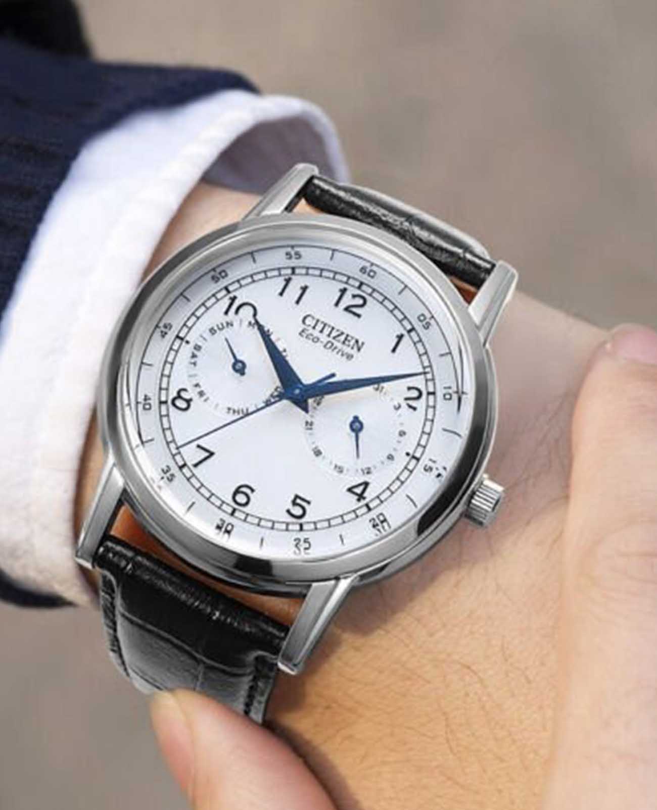 Японские наручные часы Citizen Eco-Drive AO9000-06B сочетают в себе лаконичный дизайн и современные технологии. Модель оснащена высокоточным кварцевым механизмом Citizen 8635, который обеспечивает надежную и стабильную работу. Корпус диаметром 42 мм выполнен из прочной нержавеющей стали, а белый циферблат украшен аккуратными арабскими цифрами и отдельными индикаторами даты и дня недели, что придает часам особую функциональность. Минеральное стеклоМинеральное стеклоМинеральное стекло представляет собой искусственно выращенный минерал кварца. Такое стекло отличается особой устойчивостью к повреждениям и царапинам. Уступает по некоторым качествам сапфировому стеклу. защищает белый циферблат от случайных царапин, а кожаный черный ремешок с классической застежкой гарантирует комфортную посадку на запястье. Водозащита 30WR позволяет не беспокоиться о случайных брызгах воды. Легкий вес — всего 58 грамм — делает часы практически невесомыми на руке. Модель отличается наличием инновационной системы Eco-Drive, работающей на солнечной энергии и не требующей замены батарейки, с запасом хода до 180 дней, а также функциями индикации заряда и предотвращения перезарядки. Эти часы станут отличным выбором для тех, кто ценит сдержанный стиль, функциональность и японское качество в деталях.