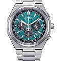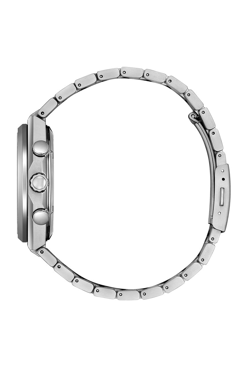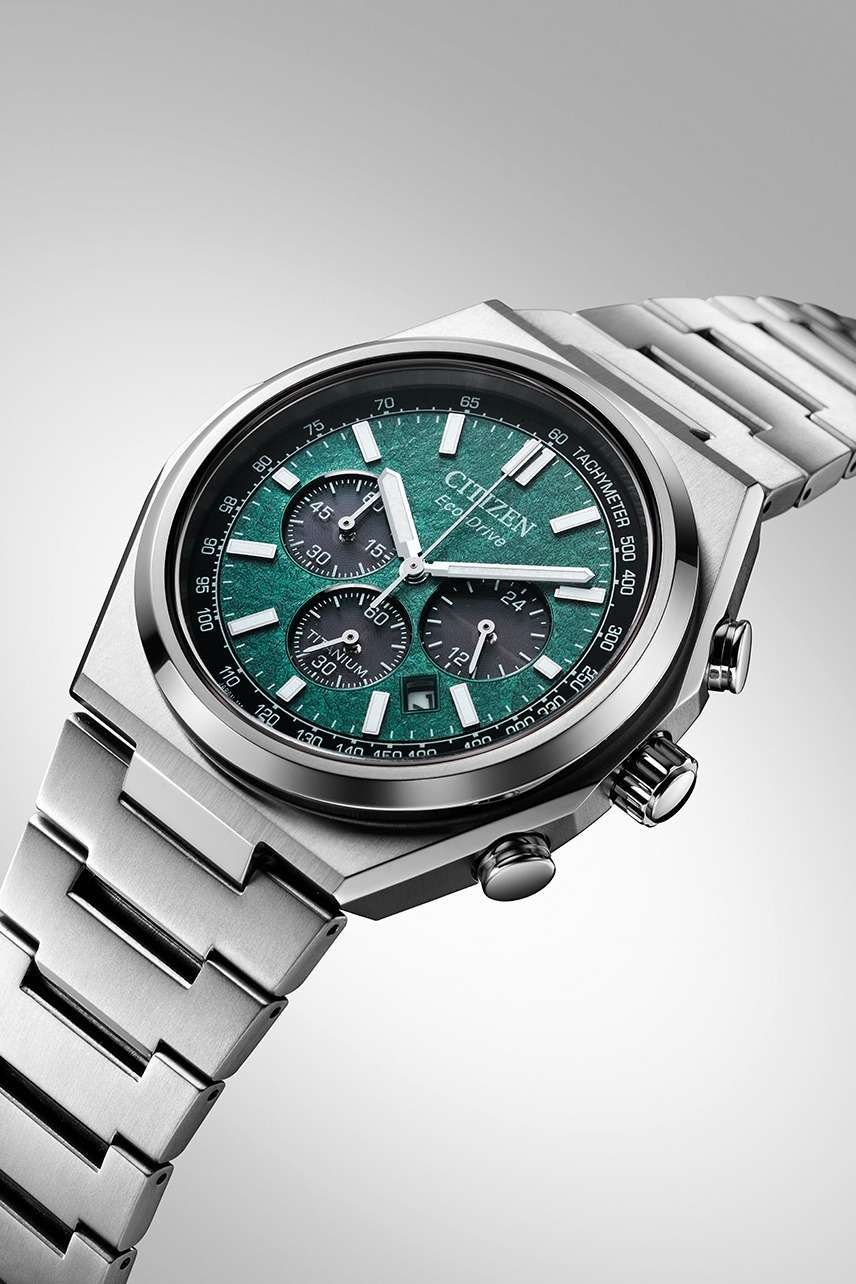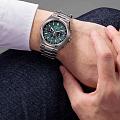 Citizen CA4610-85X — это стильные мужские кварцевые часы с функцией хронографаХронографФункция позволяет измерять отрезки времени с особой точностью: часы, минуты, секунды. Верным признаком хронографа является наличие на циферблате 3 дополнительных окошек-счётчиков., сочетающие передовые технологии и современный дизайн. Корпус и браслет выполнены из сверхлегкого и прочного титана, что обеспечивает комфортное ношение и высокую износостойкость. Зеленый круглый циферблат защищён устойчивым к царапинам сапфировым стекломСапфировое стеклоПрочный и надёжный материал из кристалла сапфира синтетического происхождения, характеризующийся особой твёрдостью и устойчивостью к царапинам и повреждениям.. Часы работают на инновационной системе Eco-Drive, питание которой осуществляется от солнечной энергии, что позволяет отказаться от замены батарейки, а запас хода достигает 9 месяцев. Стрелки с люминесцентным покрытиемЛюминесцентное покрытиеПозволяет считывать показания времени в темноте. Производители наносят на стрелки, часовые индексы, безель или поверхность циферблата светонакопительный состав, дающий холодное свечение. обеспечивают отличную читаемость времени даже в темное время суток. Для удобства предусмотрены функция предотвращения перезарядки и индикация уровня заряда EOLEOLПредставляет собой систему, уведомляющую владельца часов о необходимости замены элемента питания. За 2 недели до полного разряда батарейки секундная стрелка перестаёт ходить чётко и начинает перепрыгивать на 3-4 деления.. Надёжный японский механизм Citizen B620 обеспечивает точный ход, а центральные часовая и минутная стрелки, вынесенная на отдельный малый циферблат секундная стрелка и апертура даты между 4 и 5 часами делают использование максимально удобным. Модель поддерживает 12- и 24-часовой формат времени, а также оснащена секундомером для точного измерения промежутков. Диаметр корпуса составляет 42,5 мм, толщина — 11,6 мм, вес — около 101 грамма. Водозащита уровня WR 100 позволяет не снимать часы во время плавания без глубокого погружения. Раскладная застёжкаРаскладная застёжкаТакой тип застёжки используется только на браслетах из металла. Она никогда не раскрывается полностью, происходит разделение на 2 и более частей. Раскладывающая застёжка снизит вероятность потери часов к минимуму. на браслете обеспечивает надежную фиксацию на запястье. Модель оснащена хронографомХронографФункция позволяет измерять отрезки времени с особой точностью: часы, минуты, секунды. Верным признаком хронографа является наличие на циферблате 3 дополнительных окошек-счётчиков. с секундомеромСекундомерСекундоме́р — прибор, способный измерять интервалы времени с точностью до долей секунды. и тахиметромТахиметрРазмеченная шкала, располагается на ободке или безеле часов. Тахиметр позволяет рассчитать скорость на определённом участке пути, расстояние измеряется в километрах или милях..