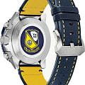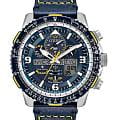 Citizen Promaster JY8078-01L часы-хронографХронографФункция позволяет измерять отрезки времени с особой точностью: часы, минуты, секунды. Верным признаком хронографа является наличие на циферблате 3 дополнительных окошек-счётчиков. с секундомеромСекундомерСекундоме́р — прибор, способный измерять интервалы времени с точностью до долей секунды. спортивного дизайна с высоким уровнем водозащиты. Корпус из нержавеющей стали диаметром 45,4 мм идеально сбалансирован. Сапфировое стеклоСапфировое стеклоПрочный и надёжный материал из кристалла сапфира синтетического происхождения, характеризующийся особой твёрдостью и устойчивостью к царапинам и повреждениям. обеспечивает отличную защиту циферблата от царапин. Часы работают на основе кварцевого механизма, питание от солнечной энергии. Кожаный ремешок на стандартной застёжке идеально дополняют дизайн часов, обеспечивая комфортное ношение. Стрелки и метки на циферблате имеют люминесцентное покрытиеЛюминесцентное покрытиеПозволяет считывать показания времени в темноте. Производители наносят на стрелки, часовые индексы, безель или поверхность циферблата светонакопительный состав, дающий холодное свечение. позволяющее легко определять время даже в темноте. Поворотный безельБезельВнешний ободок, закрепляющий стекло. В спортивных часах так называется поворотное кольцо с делениями на циферблате, выполняет роль таймера – замеряет отрезки времени на шкале. Неподвижный безель – элемент декора. Однонаправленно вращающийся безель на дайверских часах позволяет фиксировать моменты погружения и выныривания на поверхность. с IP-покрытиемIP-покрытиеМетод ионного напыления. Демонстрирует повышенную устойчивость к истиранию, окислению и химическим веществам. Под воздействием высокого давления и температуры около 1500°C молекулы металла надёжно соединяются с частицами корпуса часов.. Автоматический прием сигналов от радиовышек, расположенных в различных точках земного шара, которые передают временные сигналы от определенных атомных часов. Коррекция текущего времени радиосигналом на территории почти всей Европы, США, Японии и Китая. Функция индикации заряда (EOL) и предотвращения перезарядки. Мировое времяМировое время Полезное часовое усложнение, отображающее время в основных городах и известных областях по всему миру, оно связано с часовыми поясами, удобно для путешественников и бизнесменов. - 43 города (29 часовых поясов), переход на зимнее и летнее время. Всемирное координированное время UTCUTCВсемирное кординационное время, не имеющее привязки к географическому положению Гринвича, основывается на атомном отсчёте времени. Регулировка времени осуществляется более точно, чем устаревшее GMT.