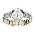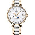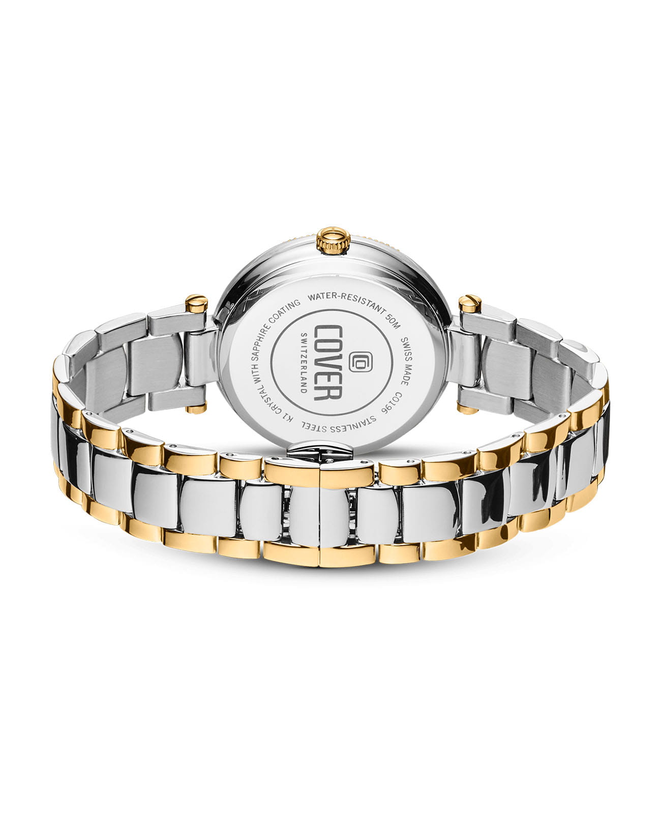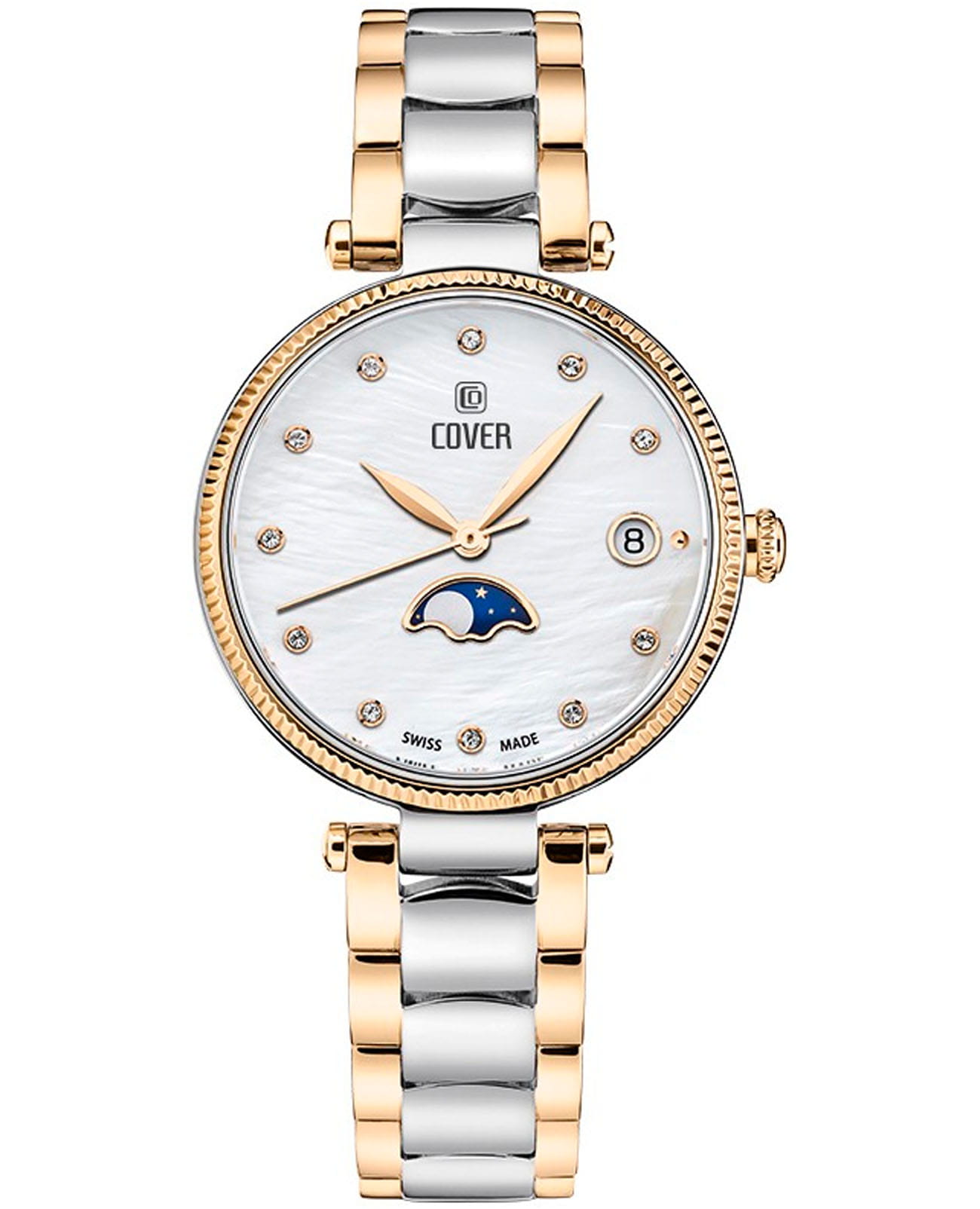 Женские наручные часы Cover CO196.02 из коллекции Fly Me To The Moon соединяют в себе элегантность и функциональность. Модель обладает круглым корпусом диаметром 32 мм, изготовленным из нержавеющей стали с PVDPVDУльтратонкое покрытие наносится в технике вакуумного напыления, сочетает в себе нитрид титана особой прочности со слоем золота или оксида хрома. Несёт в себе декоративную или защитную функцию. покрытием цвета розового золота, что придает изделию благородный вид. Браслет выполнен из нержавеющей стали с биколорным исполнением и оснащен удобной застежкой-бабочкойЗастёжка "бабочка"Такой вид застёжки дополняется предохранителями, помогающими избежать случайного раскрытия браслета. Обладают изящным исполнением. для комфортного ношения. Молочно-белый перламутровый циферблат украшен 11 кристаллами Swarovski, которые выполняют роль часовых индексов, а также имеет круглую апертуру даты на «3 часах» и индикатор фаз Луны на «6 часах». Для защиты циферблата используется минеральное стекло с сапфировым напылением, обеспечивающее высокую устойчивость к царапинам и антибликовый эффект. Часы работают на надежном кварцевом механизме, гарантирующем точное время без необходимости подзаводки. Водонепроницаемость часов достигает 5 атмосфер (50 метров), что позволяет использовать их в повседневной жизни, включая контакт с водой, однако не рекомендуется для плавания или дайвинга. Эти швейцарские часы станут прекрасным дополнением как классического, так и повседневного образа женщины, ценящей стиль и качество.
