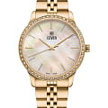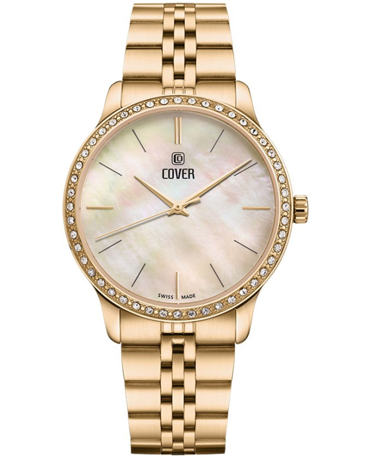Женские наручные часы Cover Saraya CO206.04 сочетают в себе элегантный дизайн и надежность современных технологий. Модель обладает круглым корпусом диаметром 36 мм, изготовленным из нержавеющей стали с PVD-покрытиемPVDУльтратонкое покрытие наносится в технике вакуумного напыления, сочетает в себе нитрид титана особой прочности со слоем золота или оксида хрома. Несёт в себе декоративную или защитную функцию., что обеспечивает высокую устойчивость к внешним воздействиям. Безель из стали с PVD-покрытиемPVDУльтратонкое покрытие наносится в технике вакуумного напыления, сочетает в себе нитрид титана особой прочности со слоем золота или оксида хрома. Несёт в себе декоративную или защитную функцию. декорирован кристаллами Swarowsky, которые придают часам особый шик и неповторимый вид. Для защиты используется сапфировое стеклоСапфировое стеклоПрочный и надёжный материал из кристалла сапфира синтетического происхождения, характеризующийся особой твёрдостью и устойчивостью к царапинам и повреждениям., обеспечивающее прочную защиту от царапин. Браслет выполнен из нержавеющей стали на раскладной застёжкеРаскладная застёжкаТакой тип застёжки используется только на браслетах из металла. Она никогда не раскрывается полностью, происходит разделение на 2 и более частей. Раскладывающая застёжка снизит вероятность потери часов к минимуму., которая отличается удобством использования. Часы работают на кварцевом механизме, основанном на ETA 902.002, что гарантирует точное время без необходимости подзаводки. Водонепроницаемость часов составляет 5 атмосфер, что позволяет использовать их в повседневной жизни, однако не рекомендуется для плавания или водных видов спорта.