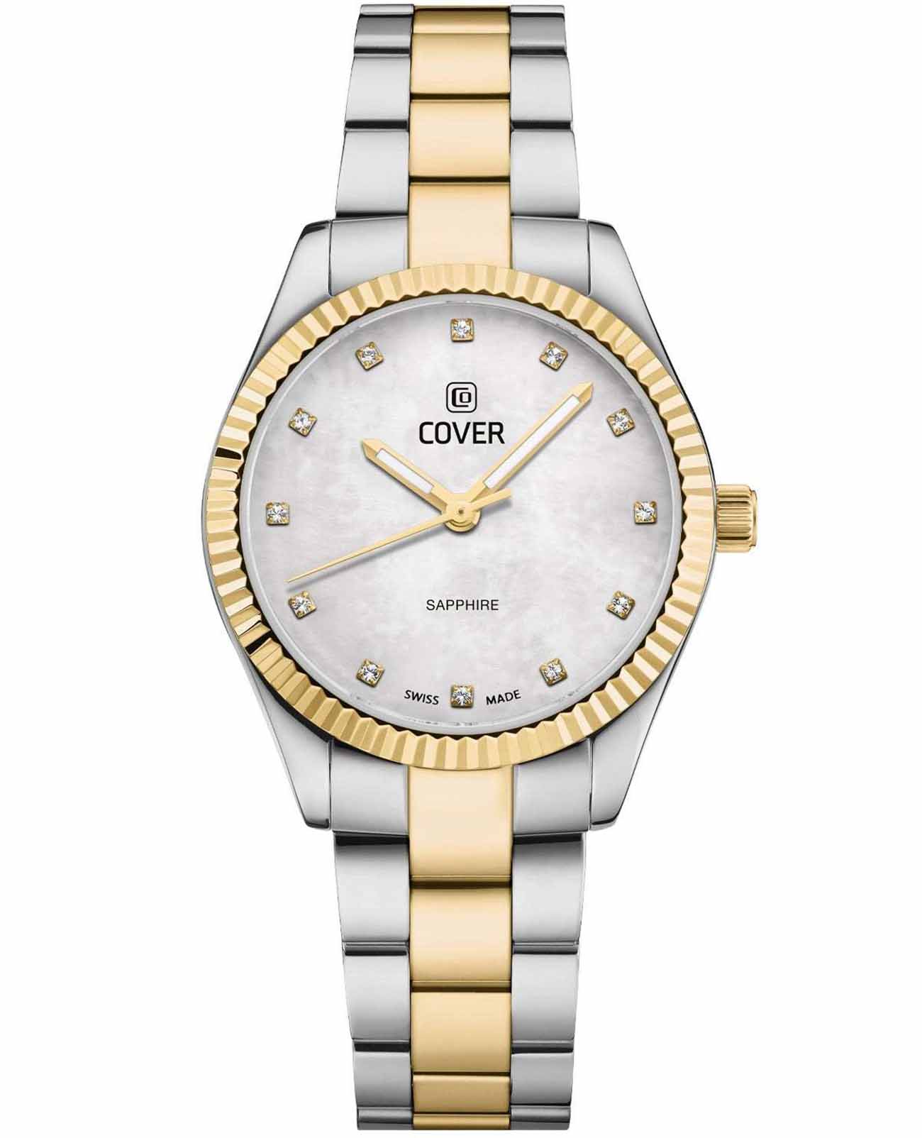 Часы Cover Valentina Mini CO224.02 воплощают в себе вечную элегантность благодаря своему чистому и утонченному дизайну. Корпус этих швейцарские часы изготовлен из полированной нержавеющей стали, а на браслет частично нанесено золотистое PVD-покрытиеPVDУльтратонкое покрытие наносится в технике вакуумного напыления, сочетает в себе нитрид титана особой прочности со слоем золота или оксида хрома. Несёт в себе декоративную или защитную функцию.. Они выделяются светящимся белым циферблатом из перламутра. Золотистый рифленый безельБезельВнешний ободок, закрепляющий стекло. В спортивных часах так называется поворотное кольцо с делениями на циферблате, выполняет роль таймера – замеряет отрезки времени на шкале. Неподвижный безель – элемент декора. Однонаправленно вращающийся безель на дайверских часах позволяет фиксировать моменты погружения и выныривания на поверхность. с PVD-покрытиемPVDУльтратонкое покрытие наносится в технике вакуумного напыления, сочетает в себе нитрид титана особой прочности со слоем золота или оксида хрома. Несёт в себе декоративную или защитную функцию. и ослепительные хрустальные часовые метки создают непринужденно элегантный вид а светящиеся стрелки благодаря люминесцентному покрытиюЛюминесцентное покрытиеПозволяет считывать показания времени в темноте. Производители наносят на стрелки, часовые индексы, безель или поверхность циферблата светонакопительный состав, дающий холодное свечение. обеспечивают отличную читаемость и практичность. Эти швейцарские женские часы, идеально подходящие как для делового стиля, так и для повседневного образа, воплощают в себе универсальность и утонченность. Оснащенные устойчивым к царапинам сапфировым стекломСапфировое стеклоПрочный и надёжный материал из кристалла сапфира синтетического происхождения, характеризующийся особой твёрдостью и устойчивостью к царапинам и повреждениям., швейцарским кварцевым механизмом, эти часы соединяют надежность и элегантность. Завершает образ стальной браслет с раскладной застёжкойРаскладная застёжкаТакой тип застёжки используется только на браслетах из металла. Она никогда не раскрывается полностью, происходит разделение на 2 и более частей. Раскладывающая застёжка снизит вероятность потери часов к минимуму., который удобно сидит на запястье и обеспечивает надежную фиксацию. Часы обладают водозащитой уровня 50WR, что делает их подходящими для повседневного использования и активного образа жизни.