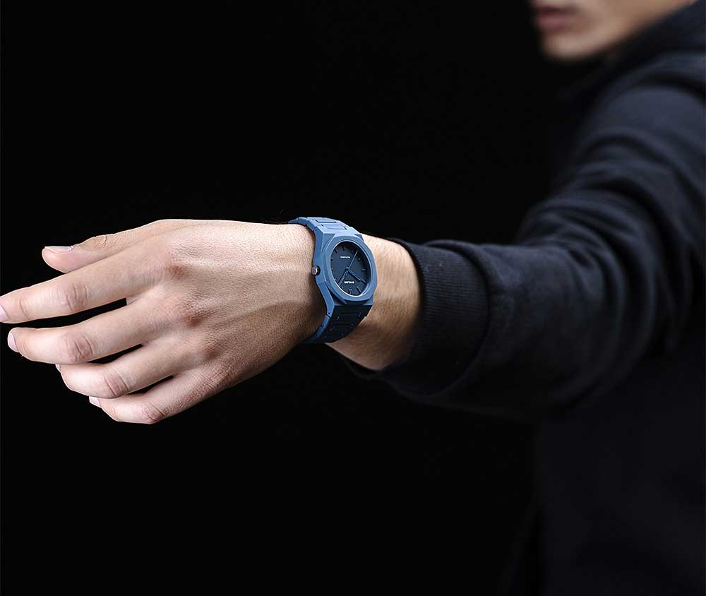Часы D1 Milano Polycarbon PCBJ21 – молодежные часы в стиле унисекс для повседневных образов. Модель Navy Blue имеет синий корпус из поликарбоната с покрытием Софт-Тач. Циферблат лаконичный с индексами в виде штрихов, защищен минеральным стекломМинеральное стеклоМинеральное стекло представляет собой искусственно выращенный минерал кварца. Такое стекло отличается особой устойчивостью к повреждениям и царапинам. Уступает по некоторым качествам сапфировому стеклу. с антибликовым покрытием. Стальная задняя крышка на 4 винтах. Пластиковый браслет с раскладной застёжкойРаскладная застёжкаТакой тип застёжки используется только на браслетах из металла. Она никогда не раскрывается полностью, происходит разделение на 2 и более частей. Раскладывающая застёжка снизит вероятность потери часов к минимуму..