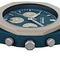 Часы D1 Milano PHBJ06 — это элегантные кварцевые часы, которые впечатляют своим функциональным дизайном, подходят как для мужчин, так и для женщин. Их высокая надежность превращает эти часы в незаменимый аксессуар на каждый день. ХронографХронографФункция позволяет измерять отрезки времени с особой точностью: часы, минуты, секунды. Верным признаком хронографа является наличие на циферблате 3 дополнительных окошек-счётчиков. оснащен секундомеромСекундомерСекундоме́р — прибор, способный измерять интервалы времени с точностью до долей секунды. и синим циферблатом, защищенным минеральным стекломМинеральное стеклоМинеральное стекло представляет собой искусственно выращенный минерал кварца. Такое стекло отличается особой устойчивостью к повреждениям и царапинам. Уступает по некоторым качествам сапфировому стеклу.. На циферблате расположены накладные метки в виде штрихов и три дополнительных циферблата серого цвета с серебристыми стрелками, а также окошко календаря в районе отметки 6 часов. Пластиковый серый безельБезельВнешний ободок, закрепляющий стекло. В спортивных часах так называется поворотное кольцо с делениями на циферблате, выполняет роль таймера – замеряет отрезки времени на шкале. Неподвижный безель – элемент декора. Однонаправленно вращающийся безель на дайверских часах позволяет фиксировать моменты погружения и выныривания на поверхность. отлично сочетается с синим пластиковым браслетом, застежкой «бабочка»Застёжка "бабочка"Такой вид застёжки дополняется предохранителями, помогающими избежать случайного раскрытия браслета. Обладают изящным исполнением. . Стальная задняя крышка этих часов крепится на 4-х винтах. Водонепроницаемость до 50 метров делает эти часы идеальным выбором для повседневного использования.