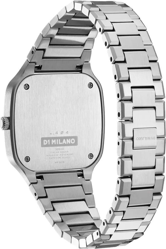 Часы D1 Milano Square Disco Grey SQBL01 — это уникальные кварцевые часы, которые подчеркнут ваш изысканный стиль. Эти наручные часы с эффектным монохромным дизайном станут выразительным акцентом вашего образа. Изысканный корпус из стали 316L диаметром 32 мм придает часам современный и утонченный вид. Серебристый циферблат, выполненный по технологии Sunray, а серебристые стрелки создают стильный контраст, подчёркивая элегантность модели. Задняя крышка закреплена на 4-х винтах. Стальной браслет с застёжкой «бабочка»Застёжка "бабочка"Такой вид застёжки дополняется предохранителями, помогающими избежать случайного раскрытия браслета. Обладают изящным исполнением. обеспечивает надежность и комфорт в повседневном использовании. Сапфировое стеклоСапфировое стеклоПрочный и надёжный материал из кристалла сапфира синтетического происхождения, характеризующийся особой твёрдостью и устойчивостью к царапинам и повреждениям. с антибликовым покрытиемАнтибликовое покрытиеСлой оксида металла в 0,13-0,3 микрон, благодаря которому стекло часов не бликует и не отражает свет. Антибликовое покрытие уменьшает отражение света в 10 раз, обеспечивая отличную читаемость показателей циферблата. защищает циферблат, а водозащита до 50WR делает эти часы практичным выбором для любых условий. Благодаря калибру Miyota 1L22 часы отличается точностью и надежностью. Эти итальянские часы представляют собой идеальное сочетание традиционного мастерства и инновационного подхода, воплощая в себе новый взгляд на классическую элегантность.