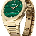 Часы D1 Milano UTBJ30 — это уникальные кварцевые часы, которые подчеркнут ваш изысканный стиль. Эти наручные часы из коллекции Ultra Thin с эффектным монохромным дизайном станут выразительным акцентом вашего образа. Корпус диаметром 40 мм из нержавеющей стали с PVDPVDУльтратонкое покрытие наносится в технике вакуумного напыления, сочетает в себе нитрид титана особой прочности со слоем золота или оксида хрома. Несёт в себе декоративную или защитную функцию. покрытием придает часам современный и утонченный вид. Зеленый циферблат метками в виде штрихов, а золотистые хроматические стрелки и индексы создают стильный контраст, подчёркивая элегантность модели. Задняя крышка из нержавеющей стали закреплена на 8-х винтах и дополнена индивидуальным серийным номером, что подчеркивает уникальность каждого экземпляра. Стальной браслет с PVDPVDУльтратонкое покрытие наносится в технике вакуумного напыления, сочетает в себе нитрид титана особой прочности со слоем золота или оксида хрома. Несёт в себе декоративную или защитную функцию. покрытием и с раскладной застёжкойРаскладная застёжкаТакой тип застёжки используется только на браслетах из металла. Она никогда не раскрывается полностью, происходит разделение на 2 и более частей. Раскладывающая застёжка снизит вероятность потери часов к минимуму. обеспечивает надежность и комфорт в повседневном использовании. Сапфировое стеклоСапфировое стеклоПрочный и надёжный материал из кристалла сапфира синтетического происхождения, характеризующийся особой твёрдостью и устойчивостью к царапинам и повреждениям. с антибликовым покрытием защищает циферблат, а водозащита до 50WR делает эти часы практичным выбором для любых условий. Благодаря калибру Miyota GL24, они отличаются точностью и надежностью. Эти итальянские часы представляют собой идеальное сочетание традиционного мастерства и инновационного подхода, воплощая в себе новый взгляд на классическую элегантность.