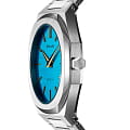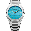 Женские наручные часы D1 Milano UTBL17 из коллекции Ultra Thin сочетают в себе элегантный дизайн и современные технологии. Модель обладает круглым корпусом диаметром 34 мм, изготовленным из высококачественной нержавеющей стали с полировкой. Толщина ультратонкого корпуса составляет всего 6,2 мм, что делает аксессуар легким и удобным для повседневного использования. Браслет также выполнен из нержавеющей стали с раскладной застежкойРаскладной замокДанный вариант застежки используется только на часах с металлическим браслетом. Отличительная особенность такого крепления в том, что длина браслета становится универсальной и вы можете самостоятельно отрегулировать нужный вам размер – застежка просто двигается по браслету часов., гарантирующей комфортное ношение и безопасность. Циферблат светло-голубого цвета с текстурой льна украшен метками в виде штрихов и оснащен стрелочным механизмом, который подчеркивает элегантность модели. Для защиты используется сапфировое стеклоСапфировое стеклоПрочный и надёжный материал из кристалла сапфира синтетического происхождения, характеризующийся особой твёрдостью и устойчивостью к царапинам и повреждениям. с антибликовым покрытиемАнтибликовое покрытиеСлой оксида металла в 0,13-0,3 микрон, благодаря которому стекло часов не бликует и не отражает свет. Антибликовое покрытие уменьшает отражение света в 10 раз, обеспечивая отличную читаемость показателей циферблата., обеспечивающее прочную защиту от царапин и бликов. Часы работают на кварцевом механизме Miyota 1L22, гарантирующем точность хода без необходимости регулярного подзавода. Водонепроницаемость часов достигает 5 атмосфер (50 метров), что позволяет использовать их во время мытья рук или плавания, однако не рекомендуется для глубоководного дайвинга.