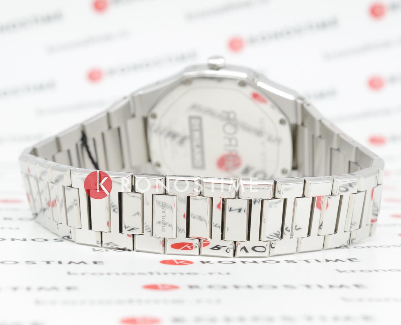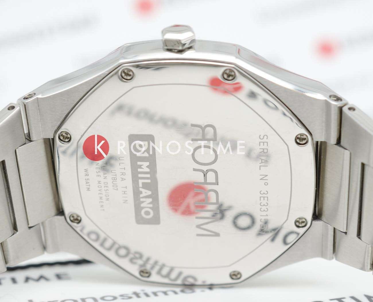 Наручные часы D1 Milano UTBU07 из коллекции Ultra Thin сочетают в себе современный дизайн и инновационные технологии. Модель обладает корпусом диаметром 38 мм, выполненным из нержавеющей стали с полированной отделкой, что подчеркивает элегантность и минимализм дизайна. Циферблат зеркального типа украшен лаконичными метками, создавая эффектный и запоминающийся образ. Защиту циферблата обеспечивает сапфировое стеклоСапфировое стеклоПрочный и надёжный материал из кристалла сапфира синтетического происхождения, характеризующийся особой твёрдостью и устойчивостью к царапинам и повреждениям. с антибликовым покрытиемАнтибликовое покрытиеСлой оксида металла в 0,13-0,3 микрон, благодаря которому стекло часов не бликует и не отражает свет. Антибликовое покрытие уменьшает отражение света в 10 раз, обеспечивая отличную читаемость показателей циферблата., известное своей устойчивостью к царапинам и высокой прозрачностью. Часы оснащены кварцевым механизмом Miyota 1L22, гарантирующим точность хода без необходимости подзаводки. Браслет выполнен из нержавеющей стали с полированной отделкой, что обеспечивает комфортное ношение на протяжении всего дня. Водонепроницаемость модели составляет 50 метров, что позволяет использовать часы в повседневной жизни, включая контакт с водой при мытье рук или дожде, однако не рекомендуется для погружений или активных водных видов спорта. Изготовленные в Италии, эти ультратонкие часы станут стильным аксессуаром, идеально дополняющим как деловой, так и casual-образ.