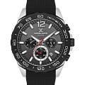 Мужские кварцевые часы-хронограф Daniel Klein — это удобный и многофункциональный аксессуар. Корпус диаметром 44 мм выполнен из нержавеющей стали. БезельБезельВнешний ободок, закрепляющий стекло. В спортивных часах так называется поворотное кольцо с делениями на циферблате, выполняет роль таймера – замеряет отрезки времени на шкале. Неподвижный безель – элемент декора. Однонаправленно вращающийся безель на дайверских часах позволяет фиксировать моменты погружения и выныривания на поверхность. с IP-покрытиемIP-покрытиеМетод ионного напыления. Демонстрирует повышенную устойчивость к истиранию, окислению и химическим веществам. Под воздействием высокого давления и температуры около 1500°C молекулы металла надёжно соединяются с частицами корпуса часов.. Циферблат серого цвета выполнен по технологии Sunray («солнечные лучи») и оформлен штрихами, арабской цифрой 12, стрелками и тремя субциферблатами хронографа. Присутствуют индикаторы 24-часового формата времени и тахиметрТахиметрРазмеченная шкала, располагается на ободке или безеле часов. Тахиметр позволяет рассчитать скорость на определённом участке пути, расстояние измеряется в километрах или милях. на безеле. Окошко даты расположено между 4 и 5 часами. Стрелки и метки с люминесцентным покрытиемЛюминесцентное покрытиеПозволяет считывать показания времени в темноте. Производители наносят на стрелки, часовые индексы, безель или поверхность циферблата светонакопительный состав, дающий холодное свечение., обеспечивающим хорошую читаемость в темноте. Циферблат защищён минеральным стекломМинеральное стеклоМинеральное стекло представляет собой искусственно выращенный минерал кварца. Такое стекло отличается особой устойчивостью к повреждениям и царапинам. Уступает по некоторым качествам сапфировому стеклу.. Заводная головка рифлёная, с защитой. Часы оснащены силиконовым ремешком на классической пряжке. Водонепроницаемость 50 м позволяет использовать часы в повседневных условиях. Идеальный выбор для тех, кто ценит турецкое качество и универсальный дизайн.