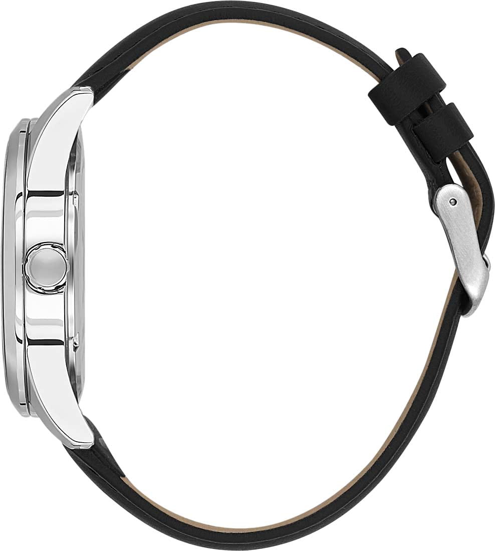 Мужские кварцевые часы Daniel Klein — это стильный аксессуар, подчеркивающий целеустремлённость и упорство. Корпус диаметром 42 мм выполнен из нержавеющей стали. Циферблат чёрного цвета имеет фактурное покрытие, оформлен штрихами и стрелками. Окошко даты расположено в положении 3 часов. Стрелки с люминесцентным покрытиемЛюминесцентное покрытиеПозволяет считывать показания времени в темноте. Производители наносят на стрелки, часовые индексы, безель или поверхность циферблата светонакопительный состав, дающий холодное свечение., обеспечивающим хорошую читаемость в темноте. Циферблат защищён минеральным стекломМинеральное стеклоМинеральное стекло представляет собой искусственно выращенный минерал кварца. Такое стекло отличается особой устойчивостью к повреждениям и царапинам. Уступает по некоторым качествам сапфировому стеклу.. Часы оснащены кожаным ремешком на классической пряжке. Водонепроницаемость 50 м позволяет использовать часы в повседневных условиях. Идеальный выбор для тех, кто ценит турецкое качество и универсальный дизайн.
