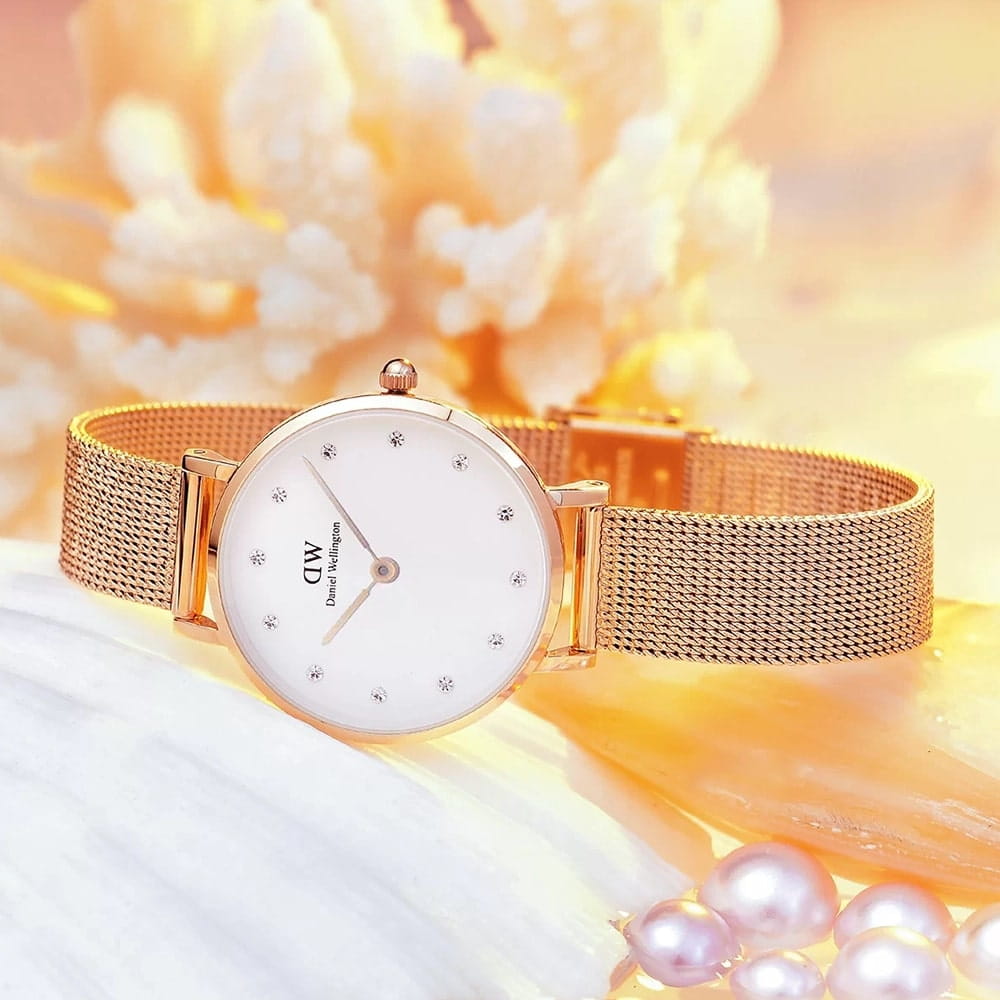 Женские наручные часы с минеральным стекломМинеральное стеклоМинеральное стекло представляет собой искусственно выращенный минерал кварца. Такое стекло отличается особой устойчивостью к повреждениям и царапинам. Уступает по некоторым качествам сапфировому стеклу. Daniel Wellington Petite Lumine Pressed Melrose DW00100528, кварцевый механизм с высокой точностью. Класс водозащиты: 30 метров, позволит защитить корпус от случайных брызг или капель дождя. Корпус часов изготовлен из стали с PVD-покрытиемPVDУльтратонкое покрытие наносится в технике вакуумного напыления, сочетает в себе нитрид титана особой прочности со слоем золота или оксида хрома. Несёт в себе декоративную или защитную функцию.. Стальной браслет на раскладной застёжкеРаскладная застёжкаТакой тип застёжки используется только на браслетах из металла. Она никогда не раскрывается полностью, происходит разделение на 2 и более частей. Раскладывающая застёжка снизит вероятность потери часов к минимуму. с PVD-покрытиемPVDУльтратонкое покрытие наносится в технике вакуумного напыления, сочетает в себе нитрид титана особой прочности со слоем золота или оксида хрома. Несёт в себе декоративную или защитную функцию..