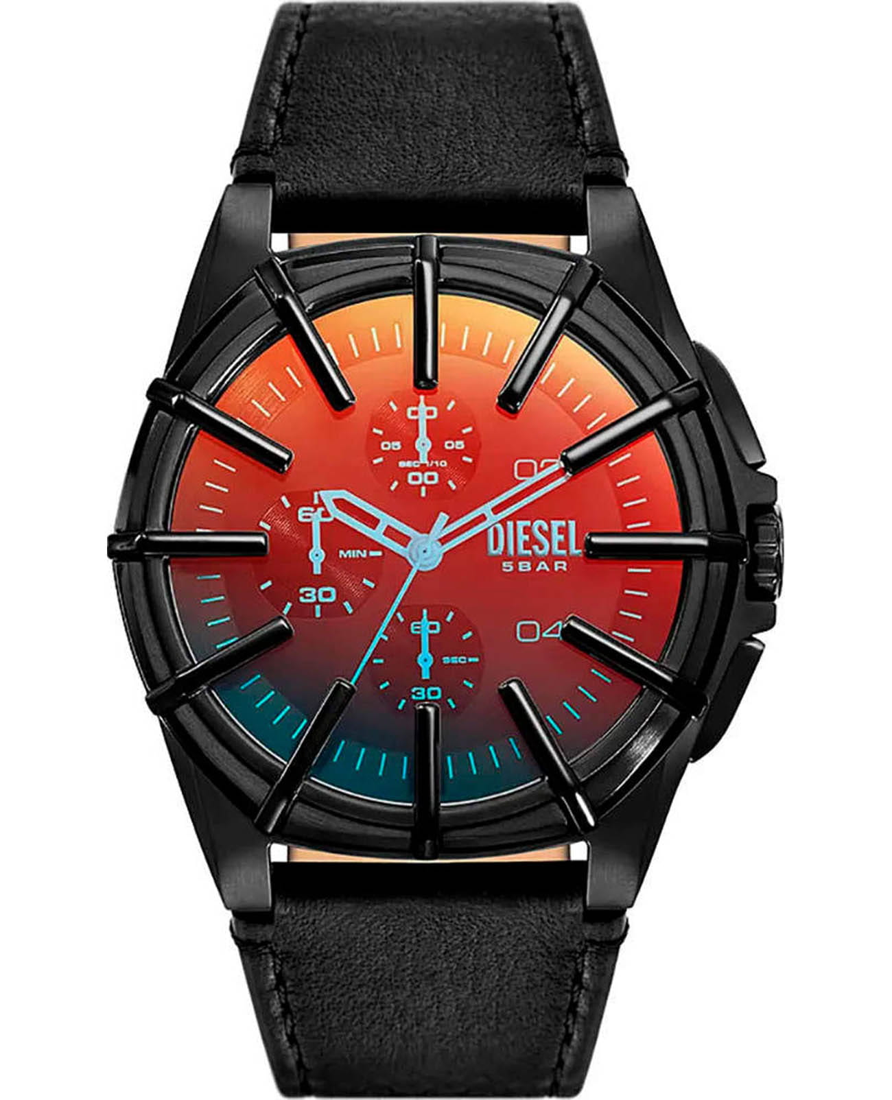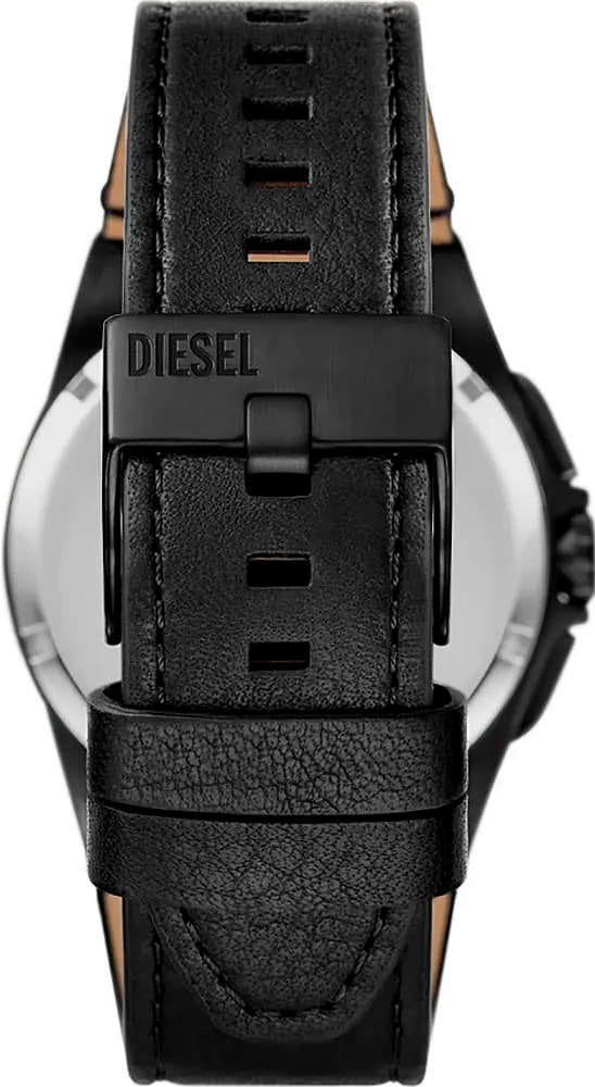 Мужские кварцевые часы Diesel DZ4658 — это стильный аксессуар, который подчеркнёт индивидуальность и чувство моды своего владельца. Модель выполнена в брутальном спортивном стиле, но при этом сохраняет универсальность, подходя как для повседневной носки, так и для неформальных случаев. Часы оснащены точным кварцевым механизмом и функцией секундомераСекундомерСекундоме́р — прибор, способный измерять интервалы времени с точностью до долей секунды., что делает их не только аксессуаром, но и практичным инструментом. Циферблат чёрного цвета дополнен штриховыми метками, а также крупными контрастными элементами, обеспечивающими отличную читаемость. Защиту циферблата обеспечивает минеральное стеклоМинеральное стеклоМинеральное стекло представляет собой искусственно выращенный минерал кварца. Такое стекло отличается особой устойчивостью к повреждениям и царапинам. Уступает по некоторым качествам сапфировому стеклу. с цветным покрытием, устойчивое к мелким повреждениям. Корпус изготовлен из стали с PVD-покрытиемPVDУльтратонкое покрытие наносится в технике вакуумного напыления, сочетает в себе нитрид титана особой прочности со слоем золота или оксида хрома. Несёт в себе декоративную или защитную функцию., что придаёт модели благородный внешний вид и повышает устойчивость к царапинам. Заводная головка имеет защиту, обеспечивающую дополнительную надёжность и комфорт при использовании. Ремешок из натуральной кожи чёрного цвета дополнен классической застёжкой, обеспечивая плотную и удобную посадку на запястье. Ширина ремешка составляет 22 мм, что гармонично сочетается с диаметром корпуса 44 мм и толщиной 14,5 мм. Часы водонепроницаемы до 50 метров (), что позволяет использовать их в повседневных условиях — при мытье рук или под дождём. Эти часы станут универсальным аксессуаром для тех, кто ценит сочетание стиля, точности и надёжности — идеальный выбор для уверенных в себе мужчин, следящих за своим образом и предпочитающих выделяться.