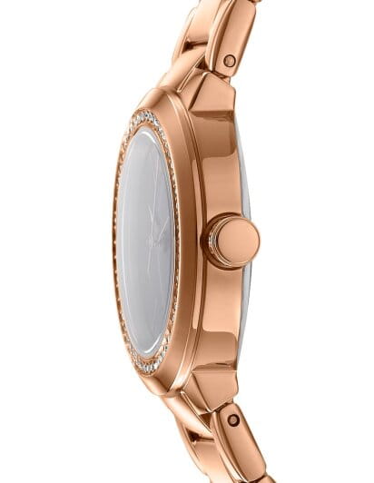 Изящные женские наручные часы DKNY Eastside Mini DK1L024M0145 гармонично объединяют стиль и практичность. Корпус из нержавеющей стали диаметром 28 мм и минеральное стеклоМинеральное стеклоМинеральное стекло представляет собой искусственно выращенный минерал кварца. Такое стекло отличается особой устойчивостью к повреждениям и царапинам. Уступает по некоторым качествам сапфировому стеклу. обеспечивает защиту от царапин, а водонепроницаемость до 50 метров делает модель практичной для активного отдыха или повседневной носки. Браслет из нержавеющей стали с IP-покрытиемIP-покрытиеМетод ионного напыления. Демонстрирует повышенную устойчивость к истиранию, окислению и химическим веществам. Под воздействием высокого давления и температуры около 1500°C молекулы металла надёжно соединяются с частицами корпуса часов. на раскладной застёжкеРаскладная застёжкаТакой тип застёжки используется только на браслетах из металла. Она никогда не раскрывается полностью, происходит разделение на 2 и более частей. Раскладывающая застёжка снизит вероятность потери часов к минимуму. надежно фиксирует часы на руке и подчёркивает женственность дизайна. БезельБезельВнешний ободок, закрепляющий стекло. В спортивных часах так называется поворотное кольцо с делениями на циферблате, выполняет роль таймера – замеряет отрезки времени на шкале. Неподвижный безель – элемент декора. Однонаправленно вращающийся безель на дайверских часах позволяет фиксировать моменты погружения и выныривания на поверхность. инкрустирован кристаллами. Эта модель станет идеальным дополнением вашего гардероба, подчеркнув индивидуальный стиль.