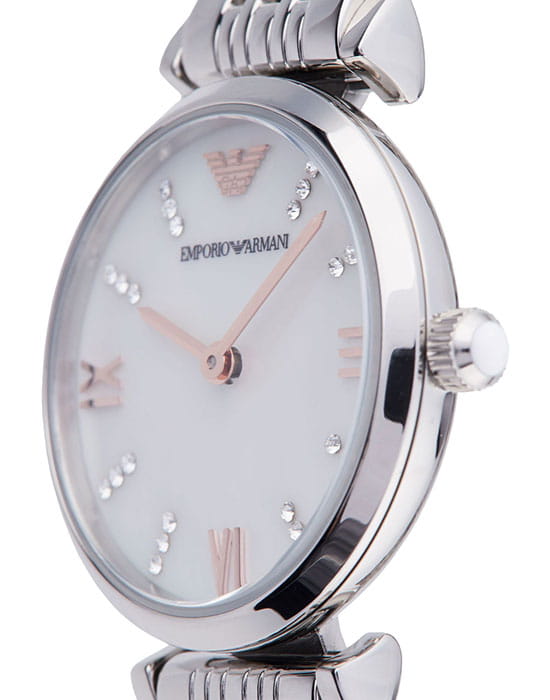 Женские наручные часы Emporio Armani обязательно должны быть в коллекции аксессуаров настоящей модницы, утончённая модель гармонично смотрится с любым стилем в одежде. Часы привлекают внимание благодаря оригинальному исполнению, традиции и классические элементы воплощаются в сочетании с современными модными трендами. Акцент сделан как на необычном оформлении циферблата, так и браслета. Такое исполнение позволяет использовать аксессуар для дополнения повседневного или вечернего образа, изделие станет прекрасным fashion- украшением для наряда. Надёжный корпус защищает кварцевый механизм с точностью хода +/- 20 сек/мес. Минеральное стекло устойчиво к образованию царапин.
