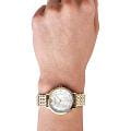 Женские кварцевые часы Emporio Armani из серии Kappa — это стильная новинка, сочетающая элегантность итальянского дизайна с надёжностью японского механизма. Корпус выполнен из нержавеющей стали с золотистым покрытием, которое реализовано по технологии PVD-покрытиеPVDУльтратонкое покрытие наносится в технике вакуумного напыления, сочетает в себе нитрид титана особой прочности со слоем золота или оксида хрома. Несёт в себе декоративную или защитную функцию.. Часы защищены минеральным стекломМинеральное стеклоМинеральное стекло представляет собой искусственно выращенный минерал кварца. Такое стекло отличается особой устойчивостью к повреждениям и царапинам. Уступает по некоторым качествам сапфировому стеклу.. Циферблат круглой формы выполнен в перламутровом цвете, придающем модели изысканный блеск, а индикация представлена золотистыми точками. Браслет из нержавеющей стали с золотистым покрытием фиксируется на застёжке «бабочка» с кнопкамиЗастёжка "бабочка"Такой вид застёжки дополняется предохранителями, помогающими избежать случайного раскрытия браслета. Обладают изящным исполнением. , обеспечивая удобство и надёжность ношения. Водонепроницаемость составляет 30 WR, что позволяет защитить часы от случайных брызг и капель дождя. Модель подчеркивает женственность и утончённый вкус владельца, идеально подходя как для повседневного, так и для вечернего образа.