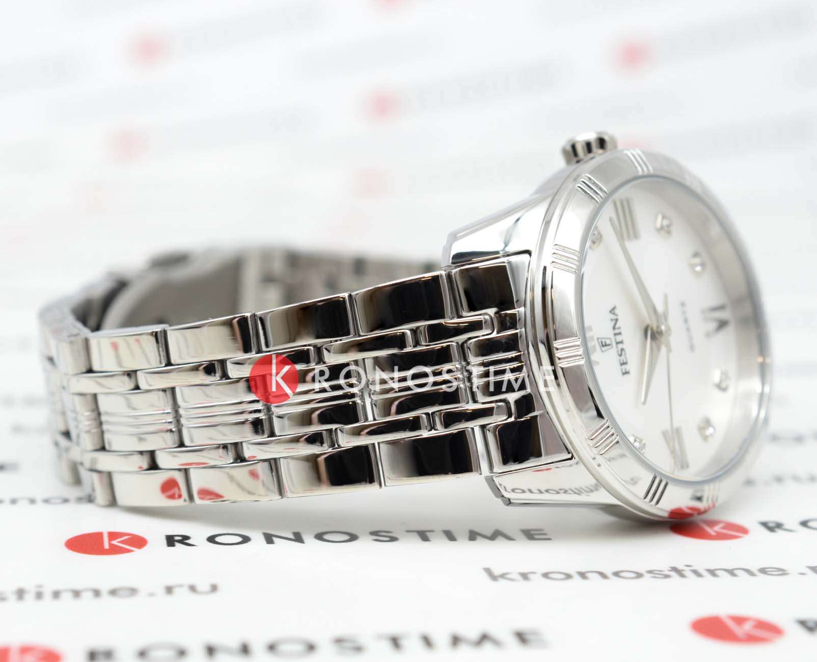 Festina Mademoiselle F16940/A - яркий стиль и функциональность этих часов придутся по душе активной девушке. Кварцевый механизм с высокой точностью. Минеральное стеклоМинеральное стеклоМинеральное стекло представляет собой искусственно выращенный минерал кварца. Такое стекло отличается особой устойчивостью к повреждениям и царапинам. Уступает по некоторым качествам сапфировому стеклу. устойчивое к появлению царапин, обладающее высокой прозрачностью. Изящный корпус диаметром 32 мм из нержавеющей стали 316L серебристого цвета идеально сочетается с серебристым циферблатом, придающими часам неповторимый блеск. Стальной браслет на раскладной застёжкеРаскладная застёжкаТакой тип застёжки используется только на браслетах из металла. Она никогда не раскрывается полностью, происходит разделение на 2 и более частей. Раскладывающая застёжка снизит вероятность потери часов к минимуму. обеспечивает комфортное ношение. Метки в виде точек (цирконы) и римских цифр. Рифленая заводная головка. Класс водозащиты: 50 метров, позволит защитить корпус от случайных брызг или капель дождя. Это идеальный аксессуар для современной женщины, ценящей элегантность и функциональность.