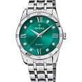 Женские кварцевые часы с минеральным стекломМинеральное стеклоМинеральное стекло представляет собой искусственно выращенный минерал кварца. Такое стекло отличается особой устойчивостью к повреждениям и царапинам. Уступает по некоторым качествам сапфировому стеклу. Festina Boyfriend F16940/F, кварцевый механизм с высокой точностью. Класс водозащиты: 50 метров, позволит защитить корпус от случайных брызг или капель дождя. Корпус часов изготовлен из стали. Стальной браслет на раскладной застёжкеРаскладная застёжкаТакой тип застёжки используется только на браслетах из металла. Она никогда не раскрывается полностью, происходит разделение на 2 и более частей. Раскладывающая застёжка снизит вероятность потери часов к минимуму.. Циферблат инкрустирован цирконами. Метки в виде точек (цирконы) и римских цифр. Рифленая заводная головка.