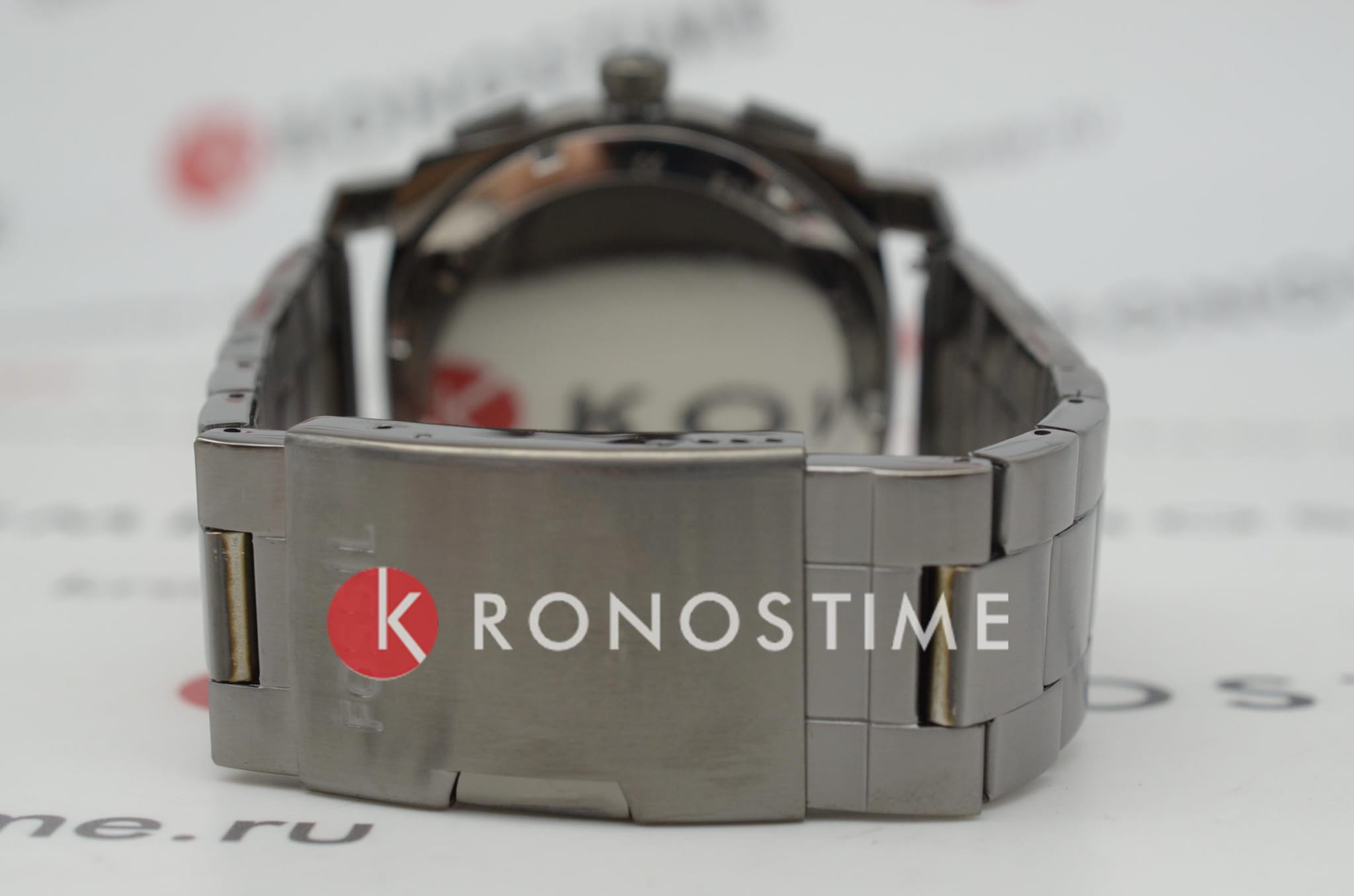 Мужские стильные американские наручные часы-хронографХронографФункция позволяет измерять отрезки времени с особой точностью: часы, минуты, секунды. Верным признаком хронографа является наличие на циферблате 3 дополнительных окошек-счётчиков.. Корпус часов выполнен из стали с PVD-покрытиемPVDУльтратонкое покрытие наносится в технике вакуумного напыления, сочетает в себе нитрид титана особой прочности со слоем золота или оксида хрома. Несёт в себе декоративную или защитную функцию.. Водонепроницаемость часов 50 метров, позволит защитить корпус от случайных брызг или капель дождя. Минеральное стеклоМинеральное стеклоМинеральное стекло представляет собой искусственно выращенный минерал кварца. Такое стекло отличается особой устойчивостью к повреждениям и царапинам. Уступает по некоторым качествам сапфировому стеклу., устойчивое к появлению царапин. Из дополнительных функций в часах присутствуют секундомер, хронограф и 24-часовой формат времени. Стальной браслет с PVD-покрытиемPVDУльтратонкое покрытие наносится в технике вакуумного напыления, сочетает в себе нитрид титана особой прочности со слоем золота или оксида хрома. Несёт в себе декоративную или защитную функцию. на раскладной застёжкеРаскладная застёжкаТакой тип застёжки используется только на браслетах из металла. Она никогда не раскрывается полностью, происходит разделение на 2 и более частей. Раскладывающая застёжка снизит вероятность потери часов к минимуму..