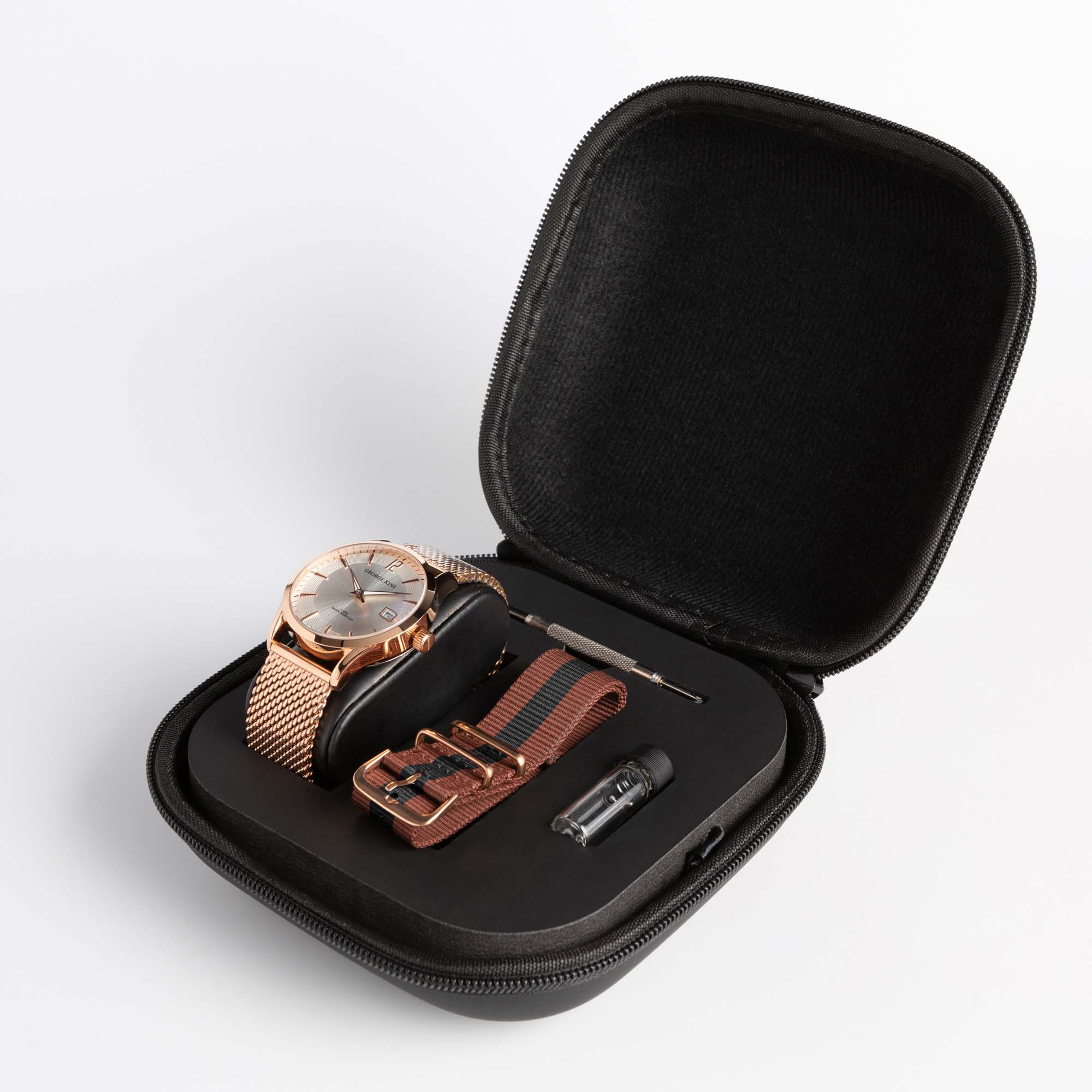 Дополнительный тканевый ремешок в стиле NATO Strap в комплекте и инструмент для его замены.