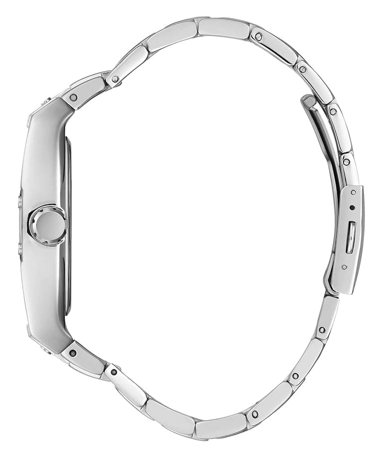 Мужские наручные часы Guess Trend GW0456G4 с минеральным стекломМинеральное стеклоМинеральное стекло представляет собой искусственно выращенный минерал кварца. Такое стекло отличается особой устойчивостью к повреждениям и царапинам. Уступает по некоторым качествам сапфировому стеклу., кварцевый механизм с высокой точностью. Класс водозащиты: 50 метров, позволит защитить корпус от случайных брызг или капель дождя. Корпус часов изготовлен из стали с IP-покрытиемIP-покрытиеМетод ионного напыления. Демонстрирует повышенную устойчивость к истиранию, окислению и химическим веществам. Под воздействием высокого давления и температуры около 1500°C молекулы металла надёжно соединяются с частицами корпуса часов.. Стальной браслет с раскладной застёжкойРаскладная застёжкаТакой тип застёжки используется только на браслетах из металла. Она никогда не раскрывается полностью, происходит разделение на 2 и более частей. Раскладывающая застёжка снизит вероятность потери часов к минимуму.