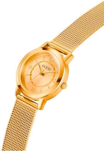 Женские наручные часы с минеральным стекломМинеральное стеклоМинеральное стекло представляет собой искусственно выращенный минерал кварца. Такое стекло отличается особой устойчивостью к повреждениям и царапинам. Уступает по некоторым качествам сапфировому стеклу. Guess Lady Melody GW0666L2, кварцевый механизм с высокой точностью. Класс водозащиты: 30 метров, позволит защитить корпус от случайных брызг или капель дождя. Корпус часов изготовлен из стали с IP-покрытиемIP-покрытиеМетод ионного напыления. Демонстрирует повышенную устойчивость к истиранию, окислению и химическим веществам. Под воздействием высокого давления и температуры около 1500°C молекулы металла надёжно соединяются с частицами корпуса часов.. Стальной браслет на ювелирной застёжке с IP-покрытиемIP-покрытиеМетод ионного напыления. Демонстрирует повышенную устойчивость к истиранию, окислению и химическим веществам. Под воздействием высокого давления и температуры около 1500°C молекулы металла надёжно соединяются с частицами корпуса часов..