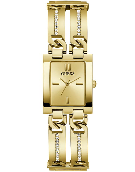 Женские наручные часы Guess GW0668L2 с минеральным стекломМинеральное стеклоМинеральное стекло представляет собой искусственно выращенный минерал кварца. Такое стекло отличается особой устойчивостью к повреждениям и царапинам. Уступает по некоторым качествам сапфировому стеклу., кварцевый механизм с высокой точностью. Класс водозащиты: 30 метров, позволит защитить корпус от случайных брызг или капель дождя. Корпус часов изготовлен из стали с IP-покрытиемIP-покрытиеМетод ионного напыления. Демонстрирует повышенную устойчивость к истиранию, окислению и химическим веществам. Под воздействием высокого давления и температуры около 1500°C молекулы металла надёжно соединяются с частицами корпуса часов.. Метки в виде штрихов. Рифленая заводная головка.