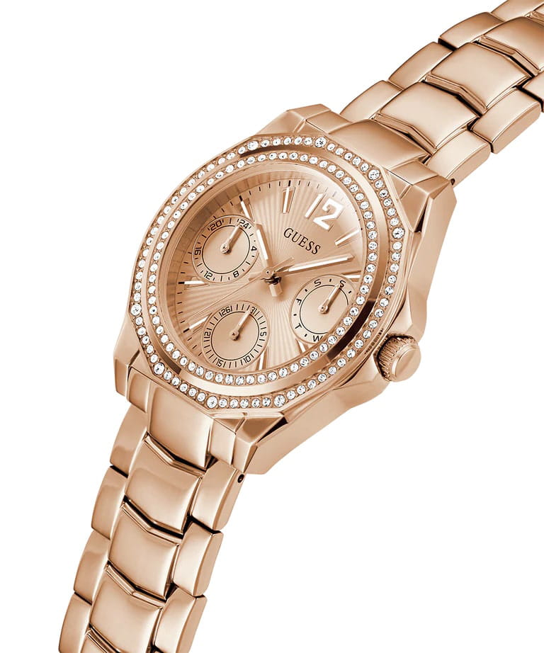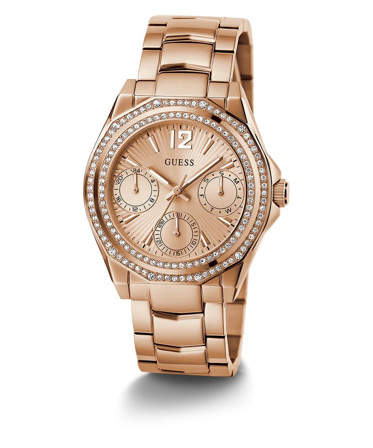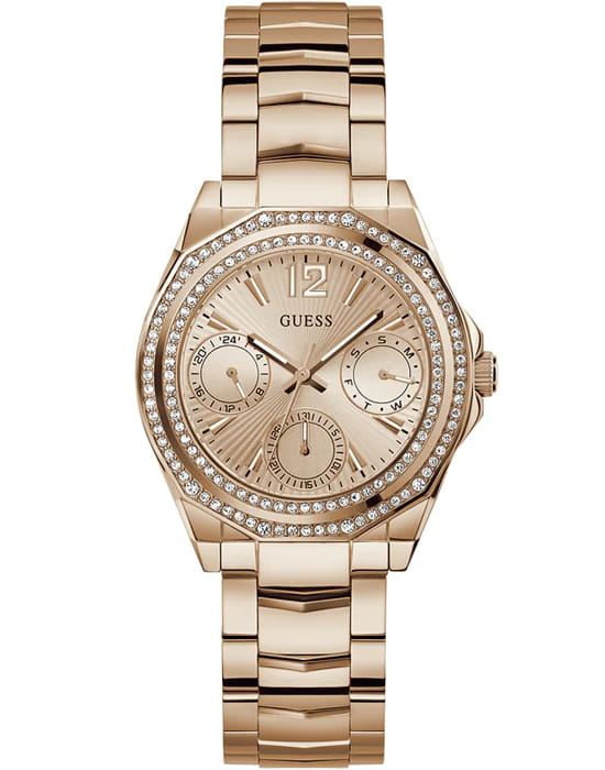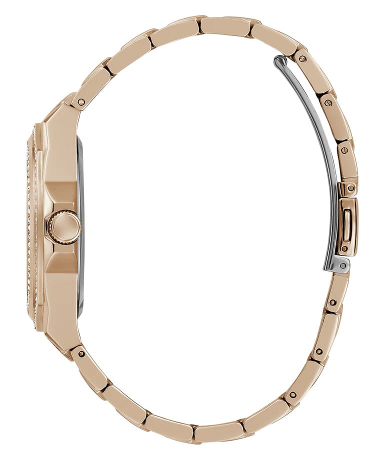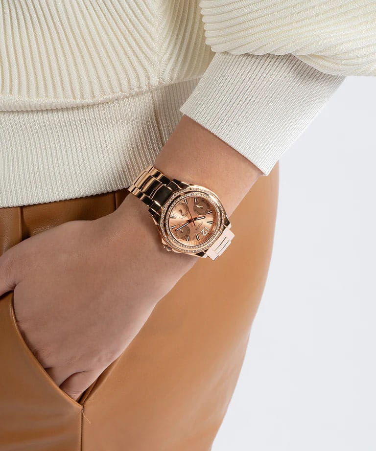 Женские наручные часы с минеральным стекломМинеральное стеклоМинеральное стекло представляет собой искусственно выращенный минерал кварца. Такое стекло отличается особой устойчивостью к повреждениям и царапинам. Уступает по некоторым качествам сапфировому стеклу. Guess GW0685L3, кварцевый механизм с высокой точностью. Класс водозащиты: 50 метров, позволит защитить корпус от случайных брызг или капель дождя. Корпус часов изготовлен из нержавеющей стали с IP-покрытиемIP-покрытиеМетод ионного напыления. Демонстрирует повышенную устойчивость к истиранию, окислению и химическим веществам. Под воздействием высокого давления и температуры около 1500°C молекулы металла надёжно соединяются с частицами корпуса часов.. Стальной браслет на раскладной застёжкеРаскладная застёжкаТакой тип застёжки используется только на браслетах из металла. Она никогда не раскрывается полностью, происходит разделение на 2 и более частей. Раскладывающая застёжка снизит вероятность потери часов к минимуму..
