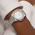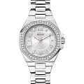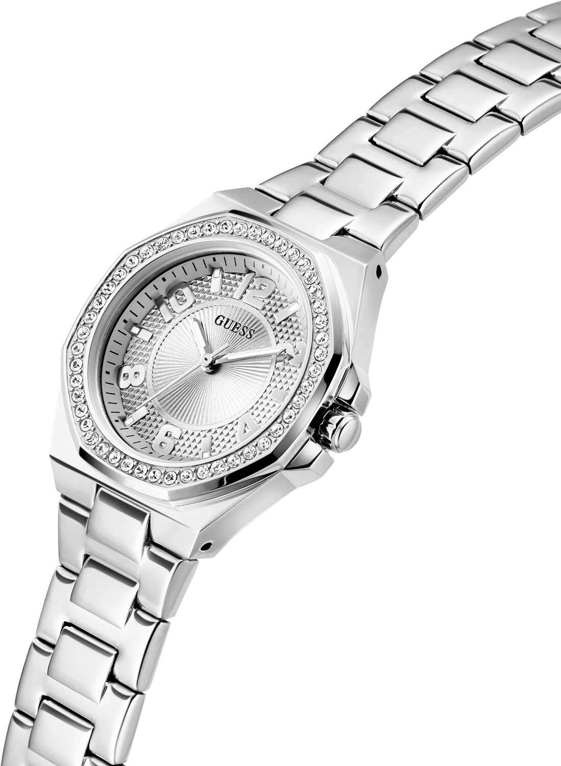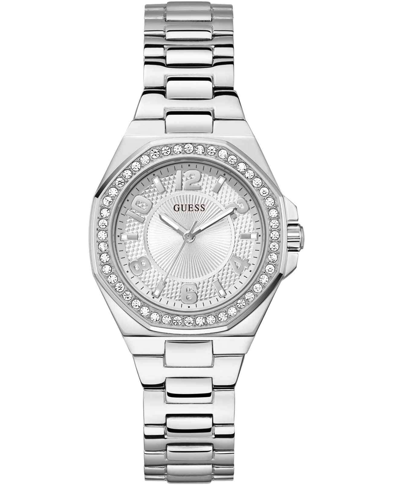 Элегантные женские наручные часы Guess GW0877L1 сочетают в себе стиль и функциональность. Эти часы оснащены точным кварцевым механизмом, что гарантирует надежность и долговечность. Корпус часов выполнен из прочной стали, а безельБезельВнешний ободок, закрепляющий стекло. В спортивных часах так называется поворотное кольцо с делениями на циферблате, выполняет роль таймера – замеряет отрезки времени на шкале. Неподвижный безель – элемент декора. Однонаправленно вращающийся безель на дайверских часах позволяет фиксировать моменты погружения и выныривания на поверхность. украшен изысканными кристаллами, придающими им роскошный вид. Серебристый циферблат с гильошированием добавляет изделию утонченности и особого шарма. Часы оснащены стальным браслетом с раскладной застежкойРаскладная застёжкаТакой тип застёжки используется только на браслетах из металла. Она никогда не раскрывается полностью, происходит разделение на 2 и более частей. Раскладывающая застёжка снизит вероятность потери часов к минимуму., который обеспечивает комфортное прилегание к запястью и надежную фиксацию. Люминесцентное покрытиеЛюминесцентное покрытиеПозволяет считывать показания времени в темноте. Производители наносят на стрелки, часовые индексы, безель или поверхность циферблата светонакопительный состав, дающий холодное свечение. на стрелках обеспечивает отличную видимость в темноте. Минеральное стеклоМинеральное стеклоМинеральное стекло представляет собой искусственно выращенный минерал кварца. Такое стекло отличается особой устойчивостью к повреждениям и царапинам. Уступает по некоторым качествам сапфировому стеклу. защищает циферблат от царапин и повреждений, сохраняя его безупречный вид. Водозащита 30WR гарантирует защиту от случайных брызг и дождя, что делает эти часы практичным аксессуаром для повседневной жизни.