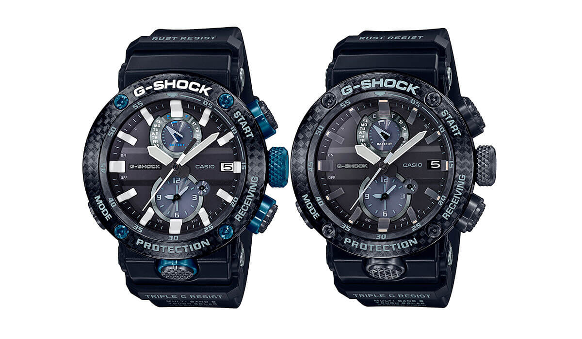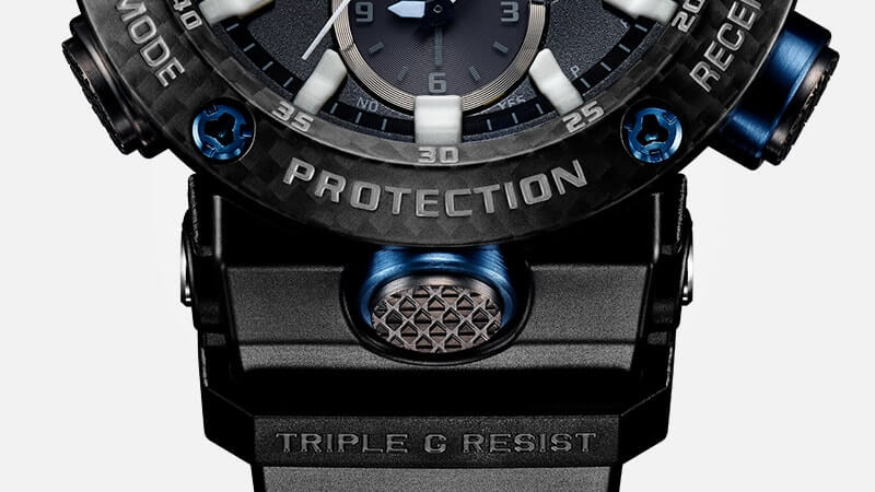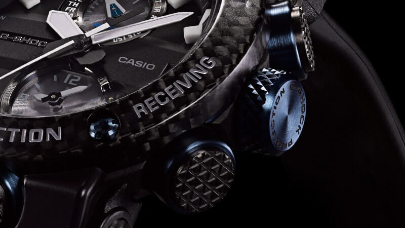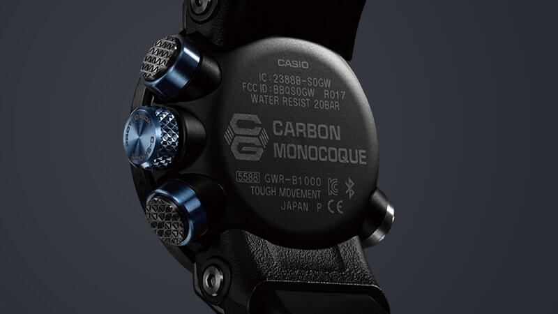 Внушительный аксессуар стильно смотрится на широком запястье, гармонично смотрятся крупные детали в голубом цвете. Задняя крышка здесь отсутствует, ударопрочный корпусУдаропрочный корпусМеханизм заключён в корпус, выполненный из современных материалов, устойчивых к ударам, механическим повреждениям и падению с высоты: инновационный пластик, карбон, нержавеющая сталь, титан. сделан из монолитного углеродного монокока, вдохновлённого конструкцией ранних самолётов. Он состоит из 52 карбоновых слоёв, уникальная текстура просматривается на боковых частях безеляБезельВнешний ободок, закрепляющий стекло. В спортивных часах так называется поворотное кольцо с делениями на циферблате, выполняет роль таймера – замеряет отрезки времени на шкале. Неподвижный безель – элемент декора. Однонаправленно вращающийся безель на дайверских часах позволяет фиксировать моменты погружения и выныривания на поверхность. – с успехом реализована технология Carbon Core GuardCarbon Core Guard Новейшая структура корпуса, разработанная Casio. Полиуретановая пластина дополнительно усилена карбоновыми вставками, что придаёт специальную защиту от механических повреждений. Карбон отличается лёгкостью и прочностью.. Полимерный ремешок тоже имеет усиление карбоновыми волокнами. Наручные часы обладают полезным функционалом: BluetoothBluetoothСовременная технология, позволяющая синхронизировать часы с телефоном и переносить данные. Часы с Bluetooth расширяют возможности вашего смартфона и делают его использование ещё более удобным., будильник, мировое времяМировое время Полезное часовое усложнение, отображающее время в основных городах и известных областях по всему миру, оно связано с часовыми поясами, удобно для путешественников и бизнесменов. , таймер, приём радиосигнала, питание от солнечной батареи . Сапфировое стекло с антибликовой обработкой. Яркая люминесцентная подсветкаЛюминесцентное покрытиеПозволяет считывать показания времени в темноте. Производители наносят на стрелки, часовые индексы, безель или поверхность циферблата светонакопительный состав, дающий холодное свечение.. Габариты: 50,1 x 46,4 x 16,9 мм.