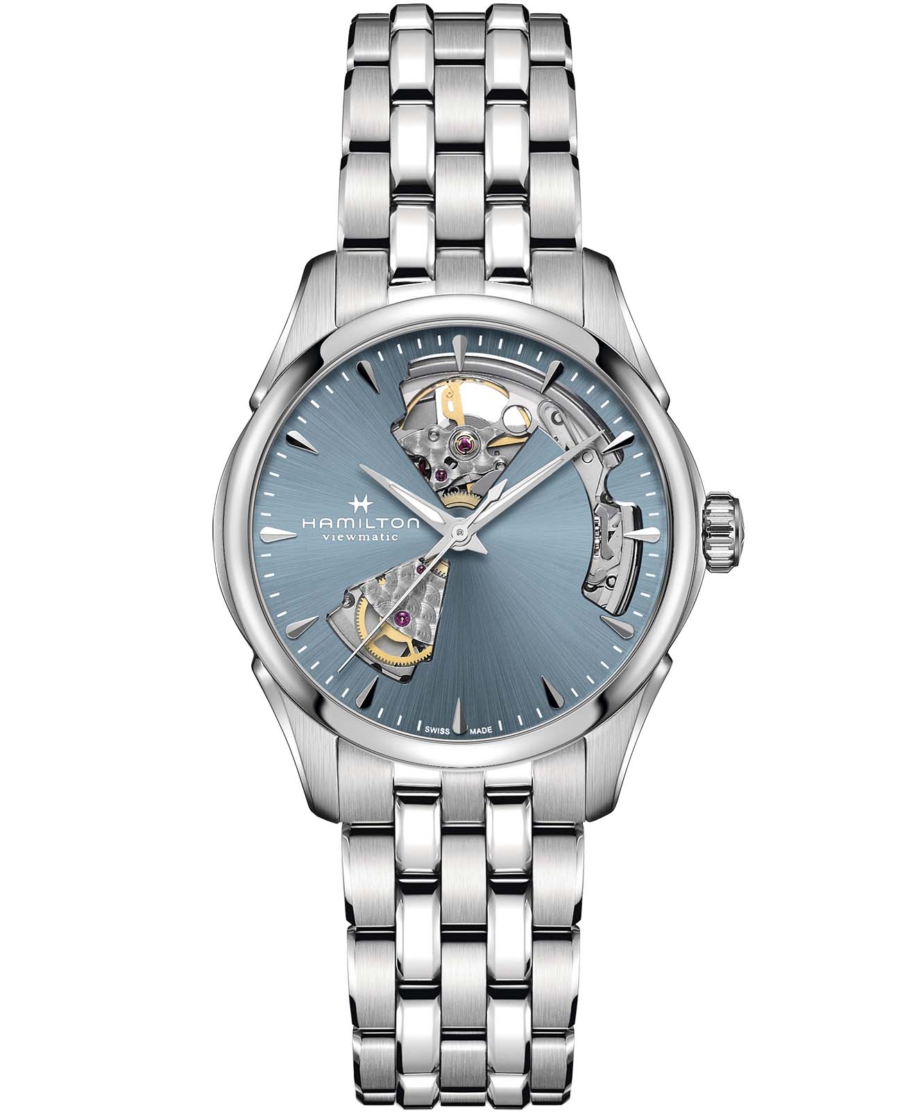 Женские механические швейцарские часы Hamilton Jazzmaster Open Heart Auto H32215140, автоматический механизм с высокой точностью. Сапфировое стеклоСапфировое стеклоПрочный и надёжный материал из кристалла сапфира синтетического происхождения, характеризующийся особой твёрдостью и устойчивостью к царапинам и повреждениям. устойчивое к появлению царапин, обладающее высокой прозрачностью. Класс водозащиты: 50 метров, позволит защитить корпус от случайных брызг или капель дождя. Корпус часов изготовлен из нержавеющей стали.