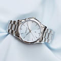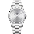 Женские механические часы Hamilton Jazzmaster Lady Auto H32315152 с автоматическим подзаводом. Корпус и браслет изготовлены из нержавеющей стали. Сапфировое стеклоСапфировое стеклоПрочный и надёжный материал из кристалла сапфира синтетического происхождения, характеризующийся особой твёрдостью и устойчивостью к царапинам и повреждениям. с антибликовым покрытием. Стальной браслет на застёжке-бабочке с кнопкамиЗастёжка "бабочка"Такой вид застёжки дополняется предохранителями, помогающими избежать случайного раскрытия браслета. Обладают изящным исполнением. . Стрелки и метки с люминесцентным покрытиемЛюминесцентное покрытиеПозволяет считывать показания времени в темноте. Производители наносят на стрелки, часовые индексы, безель или поверхность циферблата светонакопительный состав, дающий холодное свечение.. Класс водозащиты: 50 метров, позволит защитить корпус от случайных брызг или капель дождя. Окошко даты находится в положении 6 часов.