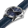 Модели из линии Jazzmaster Performer, привлекающие внимание ярким дизайном в стиле спортивный шик, сочетают в себе функциональность и эстетичность. Часы Jazzmaster Performer Automatic оснащены автоматическим механизмом H-10 с 80-часовым запасом хода. Модель в корпусе из нержавеющей стали диаметром 34 мм имеет лаконичный синий циферблат из нержавеющей стали и сочетающийся с ним перфорированный синий кожаный ремешок в гоночном стиле. Сапфировое стеклоСапфировое стеклоПрочный и надёжный материал из кристалла сапфира синтетического происхождения, характеризующийся особой твёрдостью и устойчивостью к царапинам и повреждениям. с антибликовым покрытием. Кожаный ремешок на стандартной застёжке. Стрелки и метки с люминесцентным покрытиемЛюминесцентное покрытиеПозволяет считывать показания времени в темноте. Производители наносят на стрелки, часовые индексы, безель или поверхность циферблата светонакопительный состав, дающий холодное свечение..