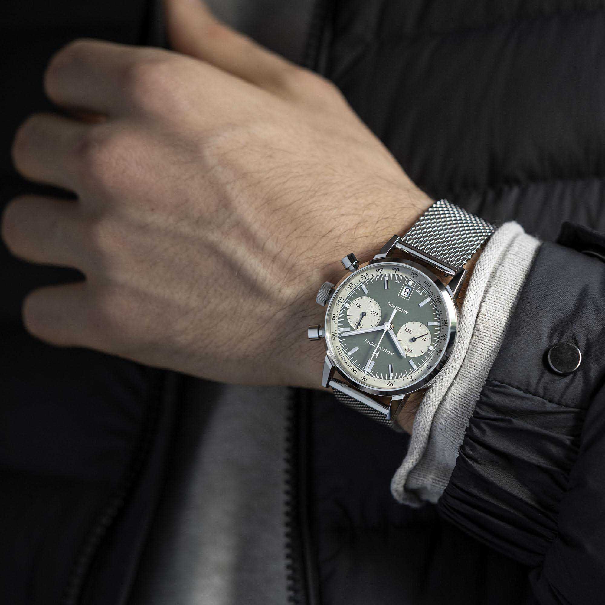 Автоматический хронографХронографФункция позволяет измерять отрезки времени с особой точностью: часы, минуты, секунды. Верным признаком хронографа является наличие на циферблате 3 дополнительных окошек-счётчиков. Intra-Matic со спортивным, но в то же время классическим дизайном и истинно винтажной привлекательностью обязательно привлечет внимание. Современный вариант фирменного изделия 1968 года выпуска, с характерным циферблатом в виде панды в свежем сочетании светло-зеленого и белого цветов. Независимо от того, решите ли вы носить его с изящным сетчатым браслетом из нержавеющей стали или высококачественным ремешком из коричневой кожи, вы будете чувствовать себя максимально комфортно и стильно. Механический механизм (автоматический калибр) с высокой точностью. Сапфировое стеклоСапфировое стеклоПрочный и надёжный материал из кристалла сапфира синтетического происхождения, характеризующийся особой твёрдостью и устойчивостью к царапинам и повреждениям. устойчивое к появлению царапин, обладающее высокой прозрачностью. Стрелки с люминесцентным покрытиемЛюминесцентное покрытиеПозволяет считывать показания времени в темноте. Производители наносят на стрелки, часовые индексы, безель или поверхность циферблата светонакопительный состав, дающий холодное свечение.. Класс водозащиты: 100 метров, позволит плавать, нырять и заниматься другими водными видами спорта. Корпус часов изготовлен из стали.