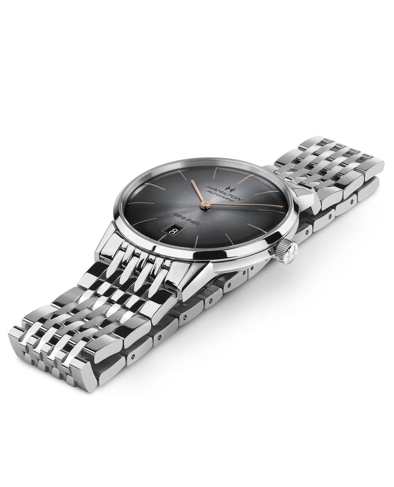 Мужские механические швейцарские часы Hamilton American Classic Intra-Matic Auto H38755181, автоматический механизм с высокой точностью. Сапфировое стеклоСапфировое стеклоПрочный и надёжный материал из кристалла сапфира синтетического происхождения, характеризующийся особой твёрдостью и устойчивостью к царапинам и повреждениям. устойчивое к появлению царапин, обладающее высокой прозрачностью. Класс водозащиты: 50 метров, позволит защитить корпус от случайных брызг или капель дождя. Корпус часов изготовлен из стали. Стальной браслет на застёжке-бабочке с кнопкамиЗастёжка "бабочка"Такой вид застёжки дополняется предохранителями, помогающими избежать случайного раскрытия браслета. Обладают изящным исполнением. .