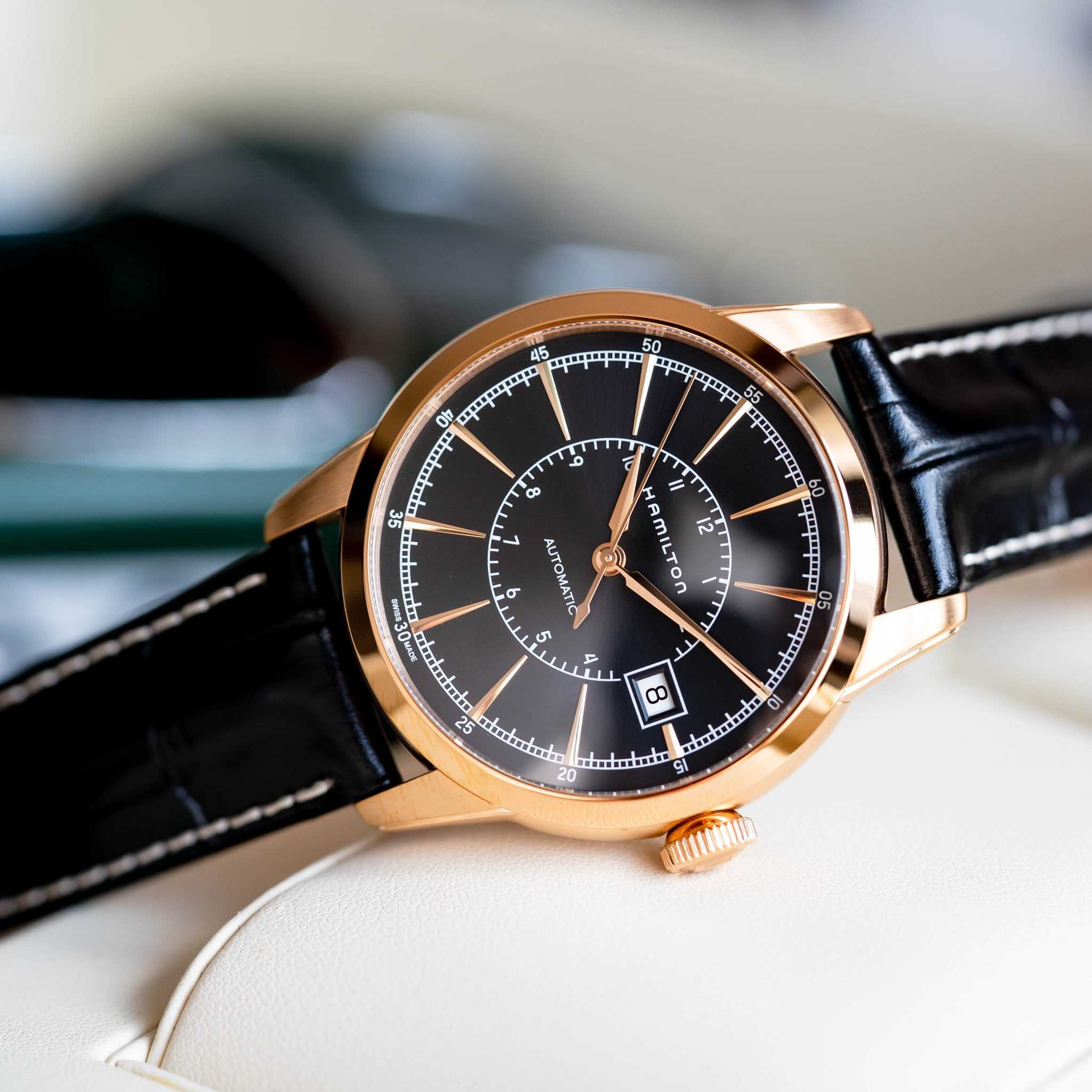 Мужские механические швейцарские часы с прозрачной задней крышкой Hamilton American Classic Railroad Auto H40505731, механический механизм (автоматический калибр) с высокой точностью. Сапфировое стеклоСапфировое стеклоПрочный и надёжный материал из кристалла сапфира синтетического происхождения, характеризующийся особой твёрдостью и устойчивостью к царапинам и повреждениям. устойчивое к появлению царапин, обладающее высокой прозрачностью. Класс водозащиты: 50 метров, позволит защитить корпус от случайных брызг или капель дождя. Корпус часов изготовлен из стали с PVD-покрытиемPVDУльтратонкое покрытие наносится в технике вакуумного напыления, сочетает в себе нитрид титана особой прочности со слоем золота или оксида хрома. Несёт в себе декоративную или защитную функцию.. Кожаный ремешок с раскладной застёжкойРаскладная застёжкаТакой тип застёжки используется только на браслетах из металла. Она никогда не раскрывается полностью, происходит разделение на 2 и более частей. Раскладывающая застёжка снизит вероятность потери часов к минимуму.. Окошко даты находится в положении 3 часа.