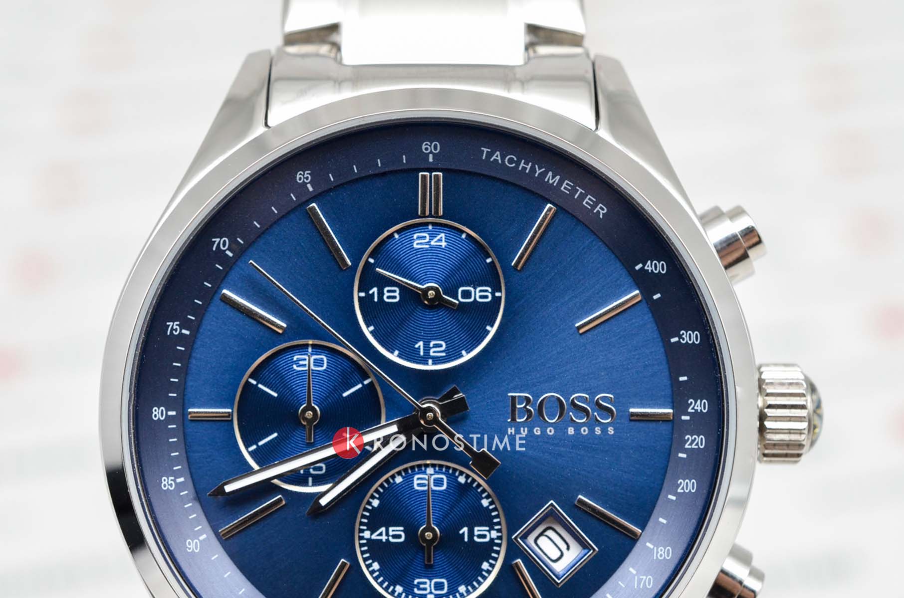 Мужские часы Hugo Boss Grand Prix HB1513478 представлены в 44-мм корпусе из нержавеющей стали с серебристым покрытием. Модель оснащена кварцевым механизмом с функцией хронографаХронографФункция позволяет измерять отрезки времени с особой точностью: часы, минуты, секунды. Верным признаком хронографа является наличие на циферблате 3 дополнительных окошек-счётчиков., тахиметраТахиметрРазмеченная шкала, располагается на ободке или безеле часов. Тахиметр позволяет рассчитать скорость на определённом участке пути, расстояние измеряется в километрах или милях. и секундомераСекундомерСекундоме́р — прибор, способный измерять интервалы времени с точностью до долей секунды., а также окошком даты на позиции 3 часа. Синий циферблат со штриховыми метками защищен устойчивым к царапинам минеральным стекломМинеральное стеклоМинеральное стекло представляет собой искусственно выращенный минерал кварца. Такое стекло отличается особой устойчивостью к повреждениям и царапинам. Уступает по некоторым качествам сапфировому стеклу.. Стальной браслет из нержавеющей стали дополнен раскладной застёжкойРаскладная застёжкаТакой тип застёжки используется только на браслетах из металла. Она никогда не раскрывается полностью, происходит разделение на 2 и более частей. Раскладывающая застёжка снизит вероятность потери часов к минимуму.. Водонепроницаемость WR30 (3 ATM) обеспечивает защиту от брызг воды и дождя.