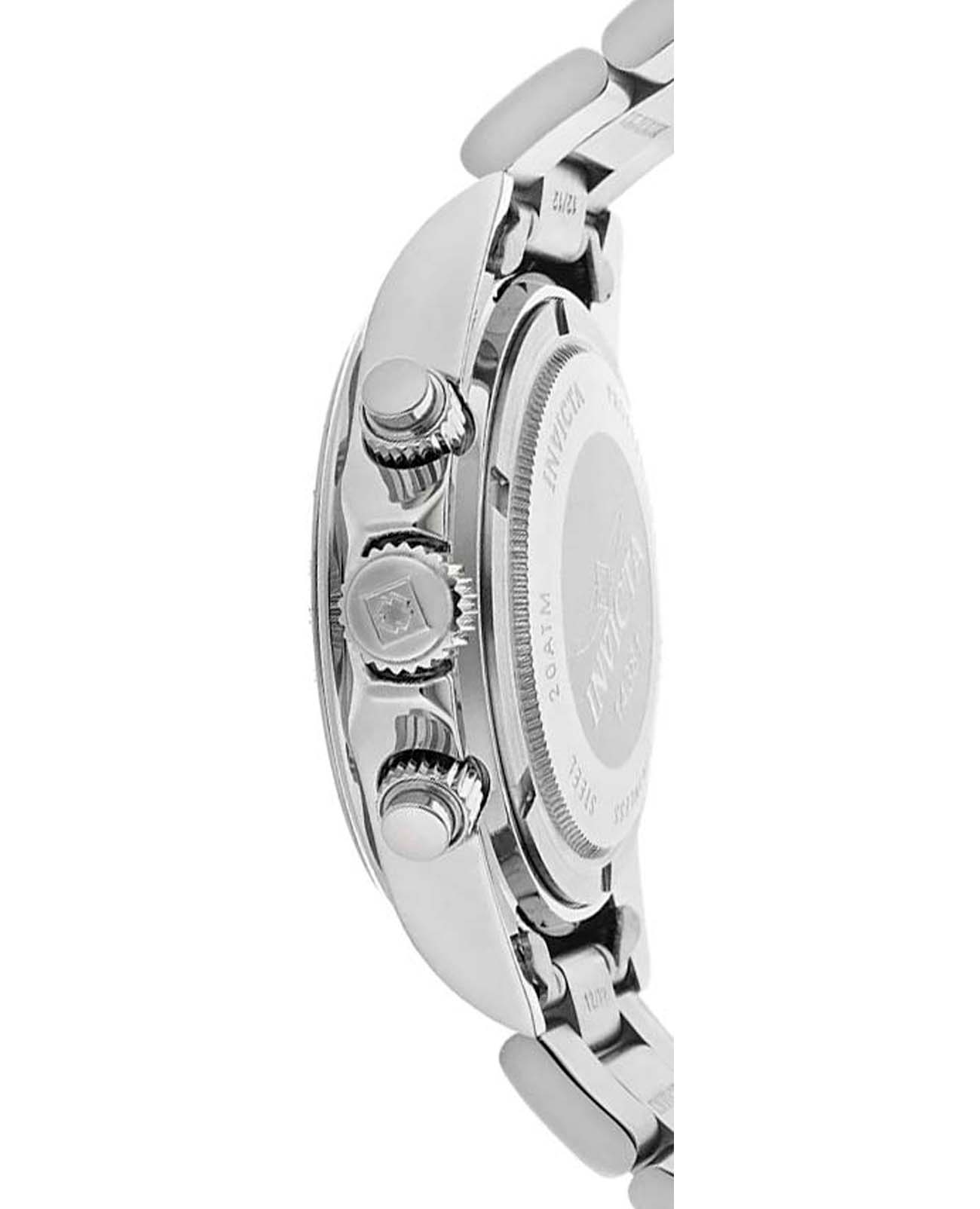 Мужские наручные часы-хронографХронографФункция позволяет измерять отрезки времени с особой точностью: часы, минуты, секунды. Верным признаком хронографа является наличие на циферблате 3 дополнительных окошек-счётчиков. Invicta IN14381 из коллекции Pro Diver сочетают в себе спортивный дизайн и надежность современных технологий. Модель обладает круглым корпусом, изготовленным из нержавеющей стали, что обеспечивает высокую устойчивость к внешним воздействиям . Браслет также выполнен из нержавеющей стали на раскладной застёжкеРаскладная застёжкаТакой тип застёжки используется только на браслетах из металла. Она никогда не раскрывается полностью, происходит разделение на 2 и более частей. Раскладывающая застёжка снизит вероятность потери часов к минимуму., гарантируя комфортное ношение и безопасность. Серебристый циферблат оснащен окном даты и дополнен функцией тахиметраТахиметрРазмеченная шкала, располагается на ободке или безеле часов. Тахиметр позволяет рассчитать скорость на определённом участке пути, расстояние измеряется в километрах или милях., что делает их практичными для различных задач . Для защиты используется минеральное стеклоМинеральное стеклоМинеральное стекло представляет собой искусственно выращенный минерал кварца. Такое стекло отличается особой устойчивостью к повреждениям и царапинам. Уступает по некоторым качествам сапфировому стеклу., обеспечивающее прочную защиту от царапин . Часы работают на японском кварцевом механизме Seiko TMI VD53B-14, что гарантирует точное время без необходимости подзаводки . Модель также является хронографомХронографФункция позволяет измерять отрезки времени с особой точностью: часы, минуты, секунды. Верным признаком хронографа является наличие на циферблате 3 дополнительных окошек-счётчиков., оснащенным функцией секундомераСекундомерСекундоме́р — прибор, способный измерять интервалы времени с точностью до долей секунды., делая ее идеальной для активного образа жизни. Водонепроницаемость часов достигает 200 метров (20 атмосфер), что позволяет использовать их во время плавания, дайвинга и других водных видов спорта . Подсветка выполнена с использованием люминесцентного покрытияЛюминесцентное покрытиеПозволяет считывать показания времени в темноте. Производители наносят на стрелки, часовые индексы, безель или поверхность циферблата светонакопительный состав, дающий холодное свечение., что обеспечивает удобство использования в темное время суток .